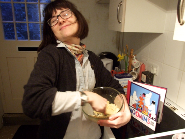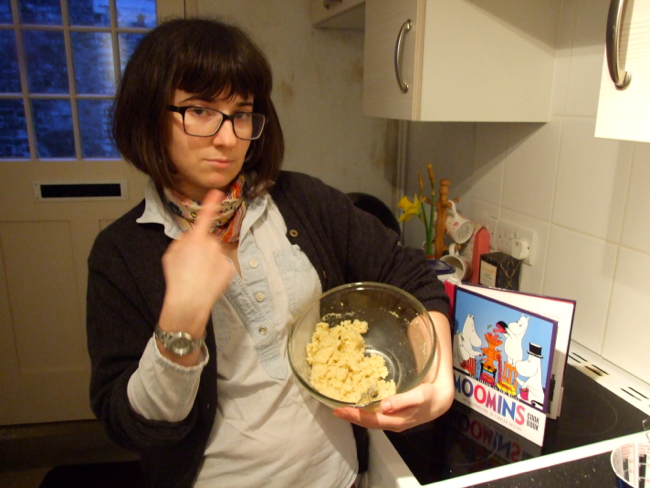 The Moomins Cookbook has a recipe for The Muskrat’s Traditional Cookies (the Muskrat hates cake.) On Sunday, I made some! Would you like to be given a creative, comics-related challenge to try? Would you like to write it up for us as a guest post afterwards? Drop me an email or get in touch in comments or on twitter.