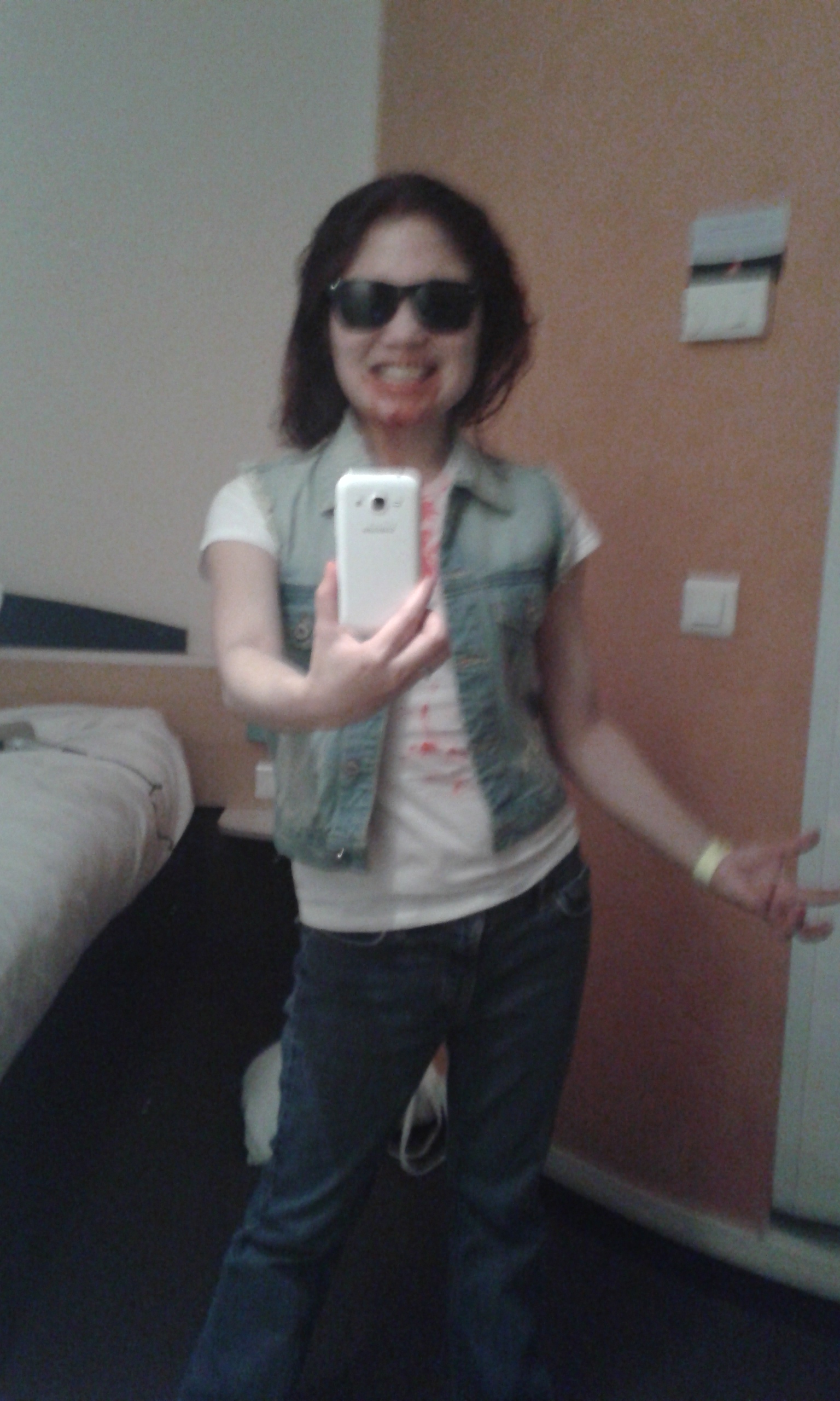 This was partially because my cosplay preparation took a bit longer than I had expected. To look remotely like Cassidy from Preacher, I needed another round of hair dye (Mango Copper) as well as convincing smears of fake blood on my chin and shirt. Since I only had one full day at the convention, I figured I might as well go for the gore.