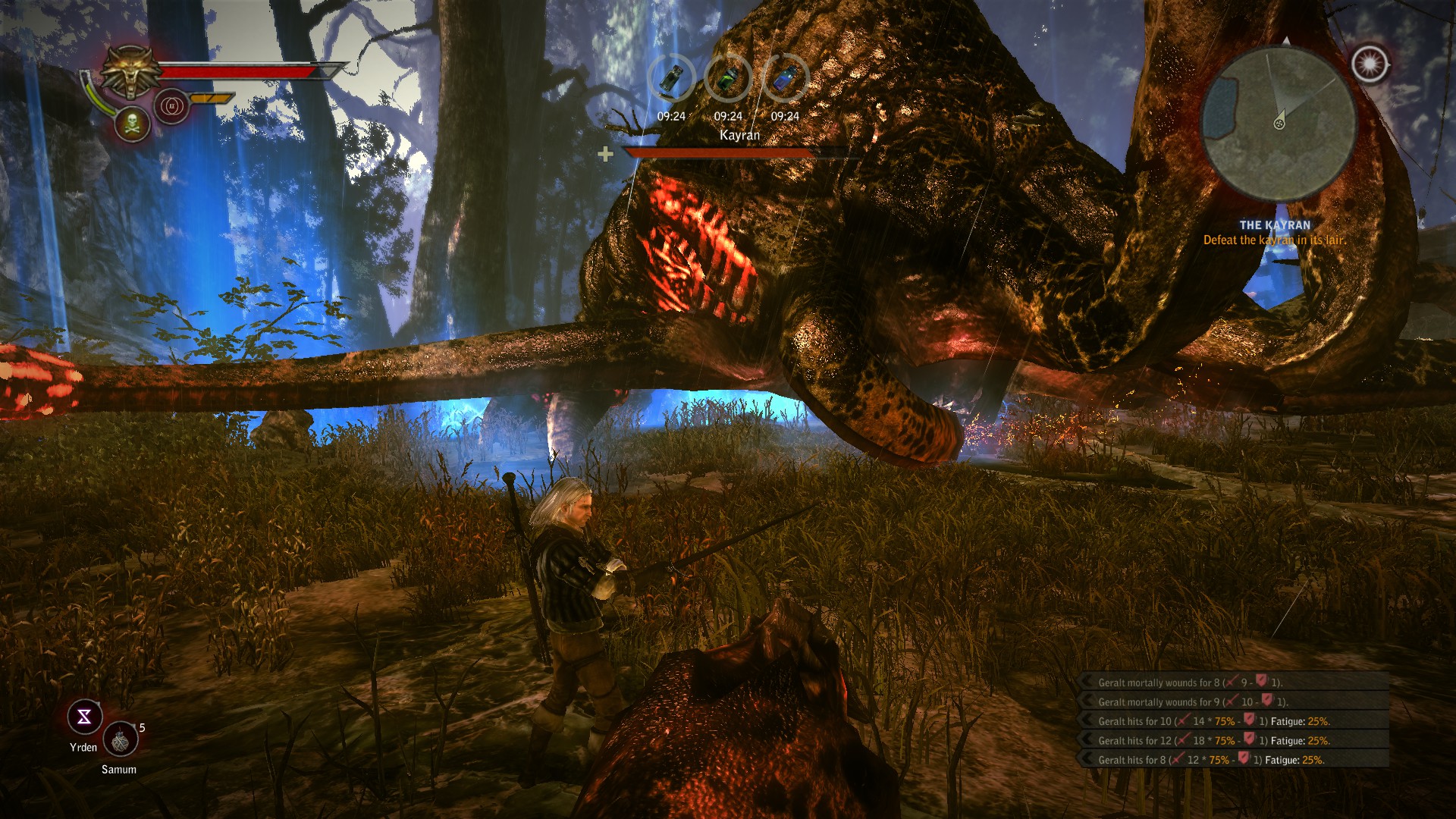 A little bit of investigation reveals that the kayran is sick and mutated, but it’s still a menace, so in this case, Geralt isn’t hesitant about killing it. After learning how to fashion a potion to make himself immune to the kayran’s toxins from the poetic elf Cedric, Geralt and Síle venture off to dispatch the beast.