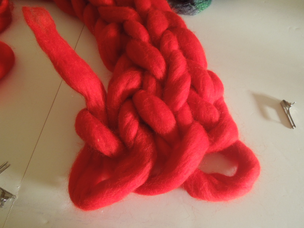 So, arm knitting takes a while to get used to if you’ve never done it before. I actually ended up arm knitting the COWYAK portion three times before moving on to the wool roving.