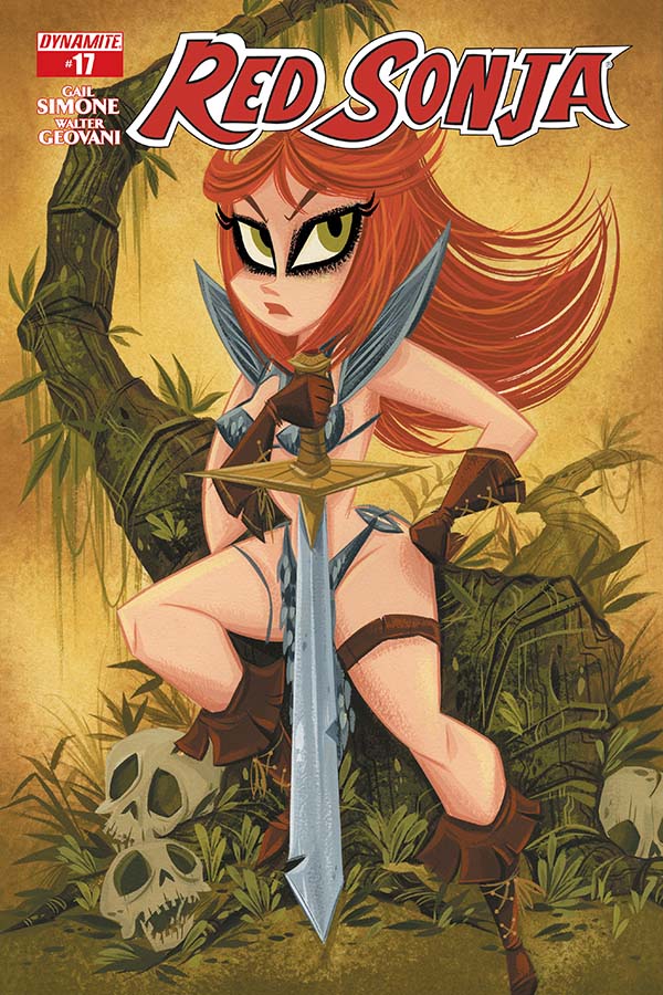 Let’s talk first impressions—as in covers. As usual, the main cover is done by Jenny Frison. I have made my appreciation of Frison’s work clear, but I like this cover for how it shows off the watercolor effect of Frison’s colors (Frison does her colors digitally, by the way). However, Rebekah Isaacs’ cover wins for sheer badassery. I’ve enjoyed Isaacs’ work on the Buffy comics, but I really want her to do more Red Sonja and sword and sorcery covers because this is some stellar work. I was also tickled by Stephanie Buscema’s cover. I have a strong dislike for Red Sonja covers where she appears to be straddling her sword—the phallic implication is obnoxious, however Buscema’s cover toys with this convention. For one, Red Sonja is not straddling the sword though it is positioned between her legs. And Red Sonja’s hand on her hip and her annoyed expression. In general, the variants for Simone’s Red Sonja are usually gorgeous and fun. I hope Dynamite continues this trend after Simone’s departure.