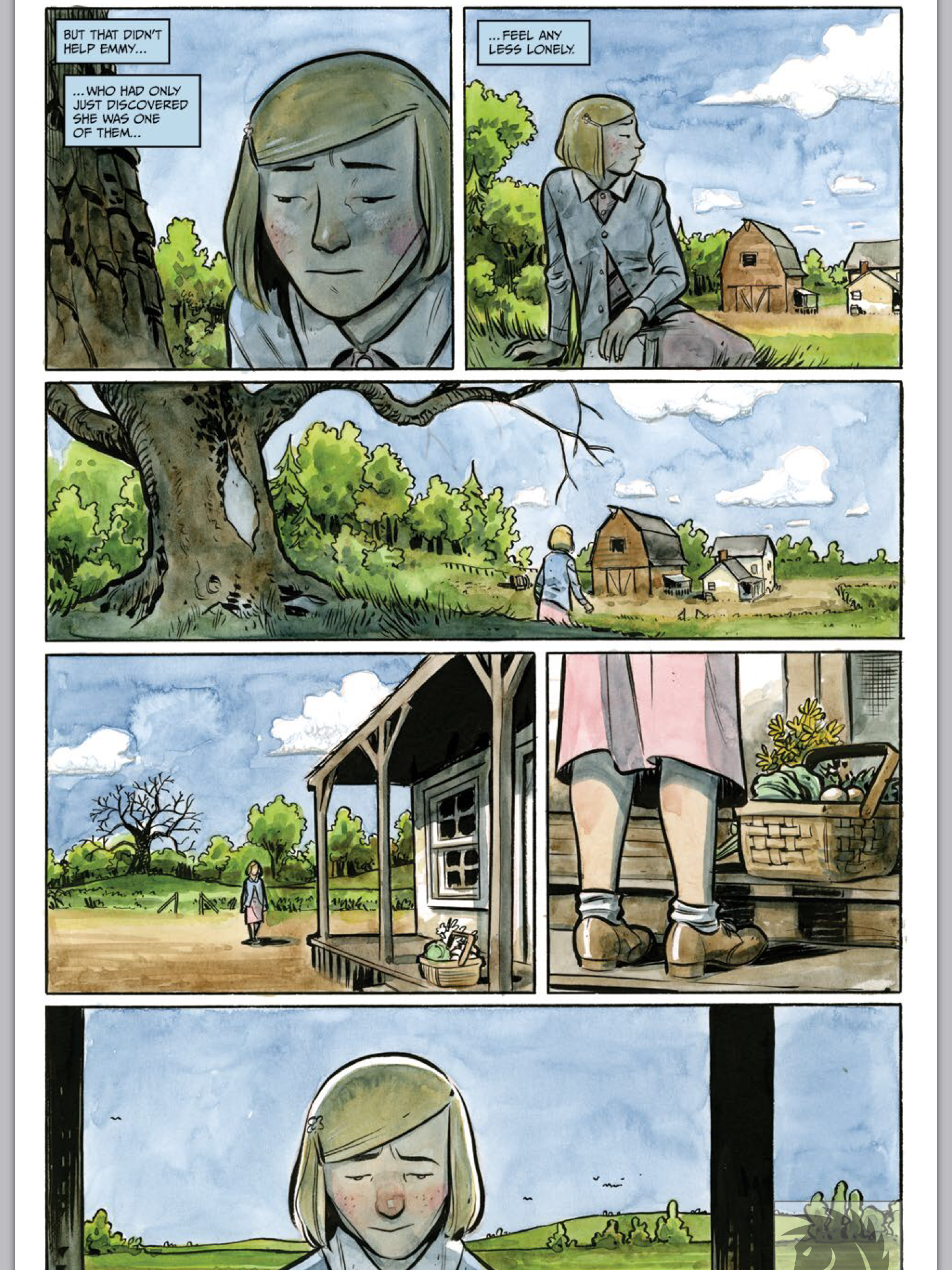 The lines and colors by Tyler Crook captures the atmosphere of mid-20th century rural South, while the colors do a great job of capturing the mood; darkening with uncertainty and lightening as Emmy achieves moments of clarity.