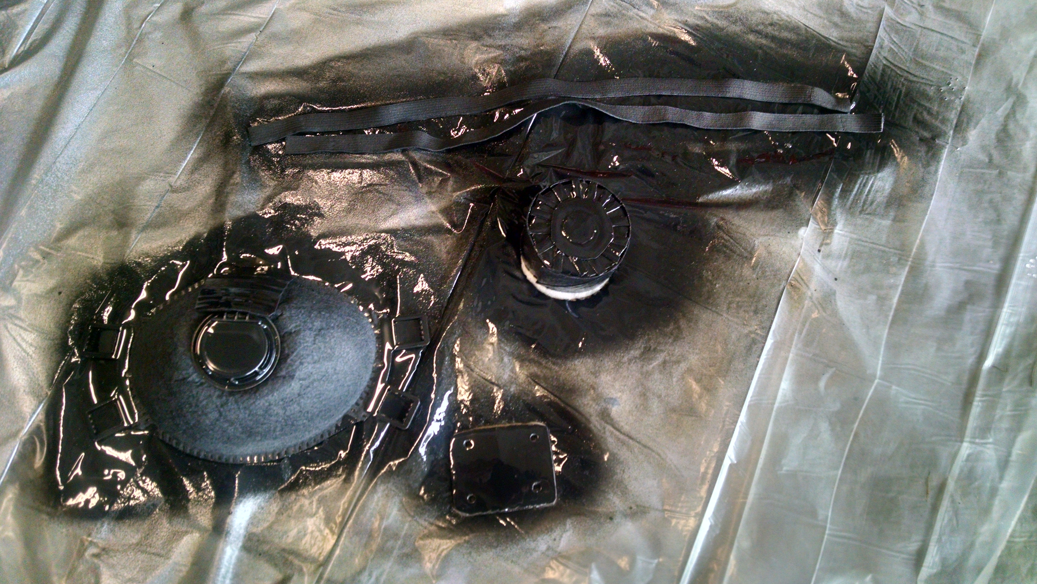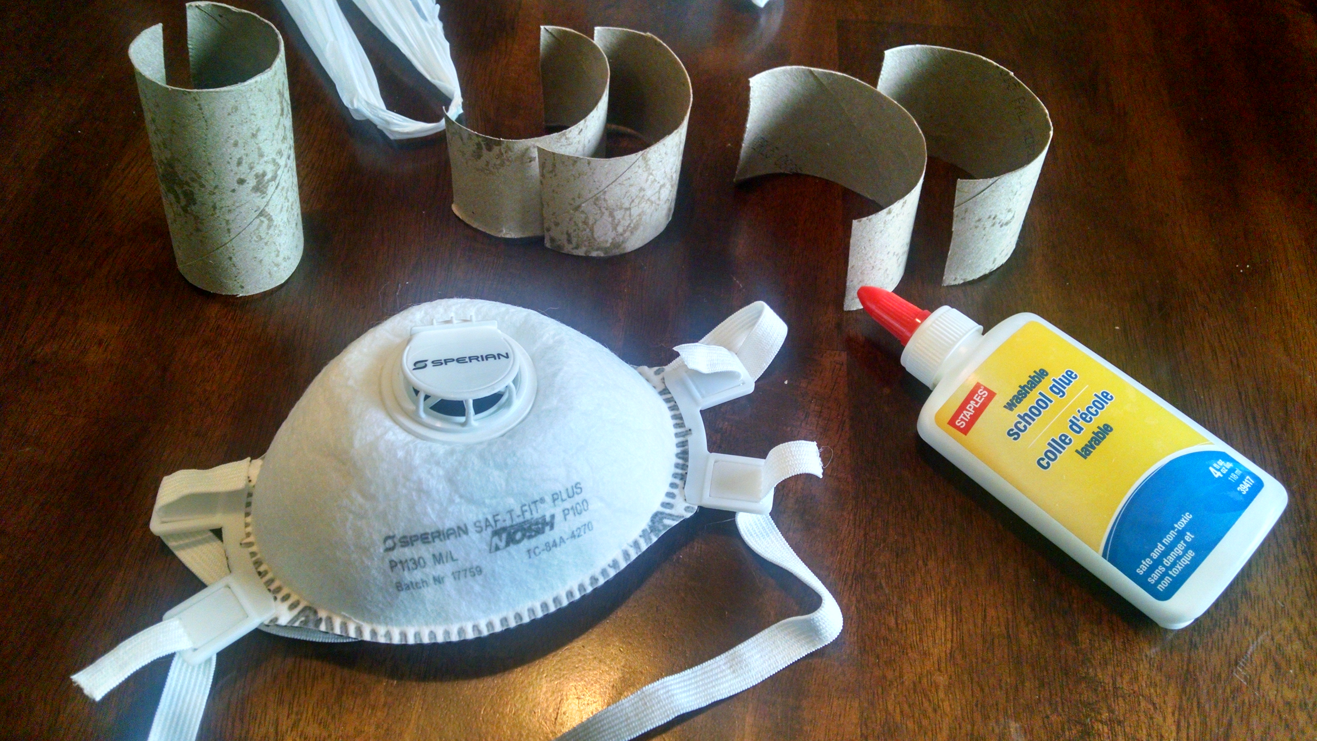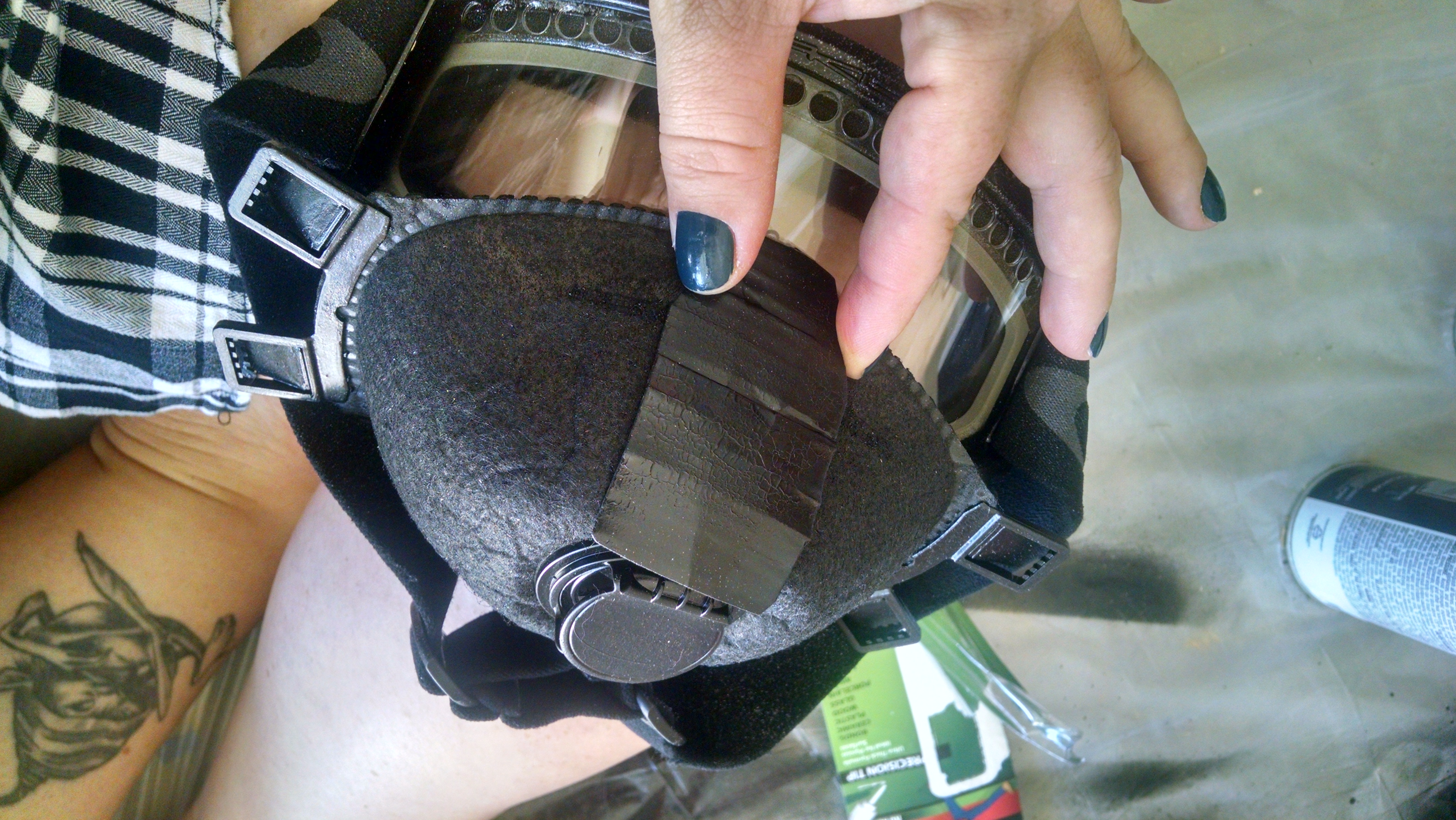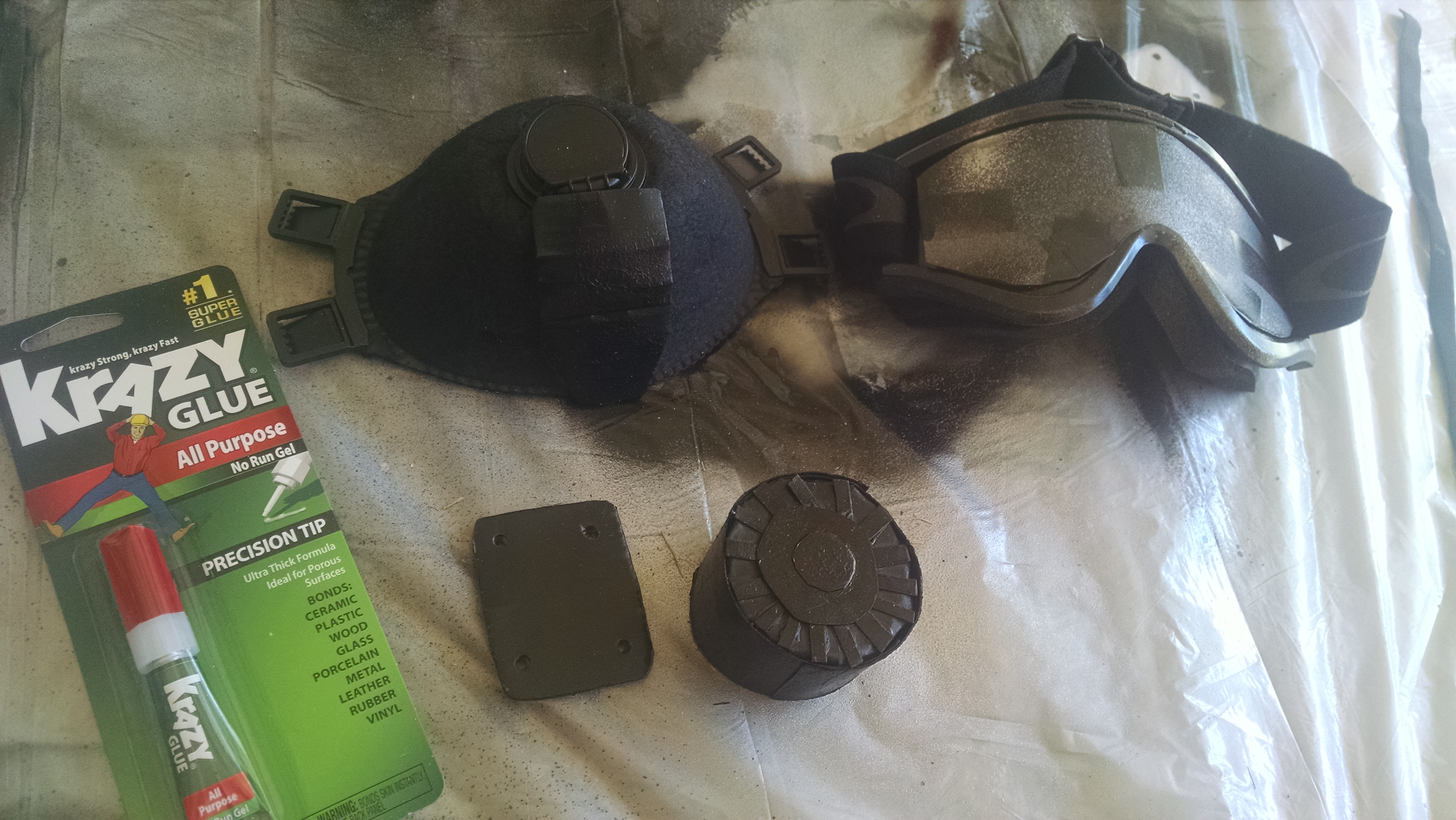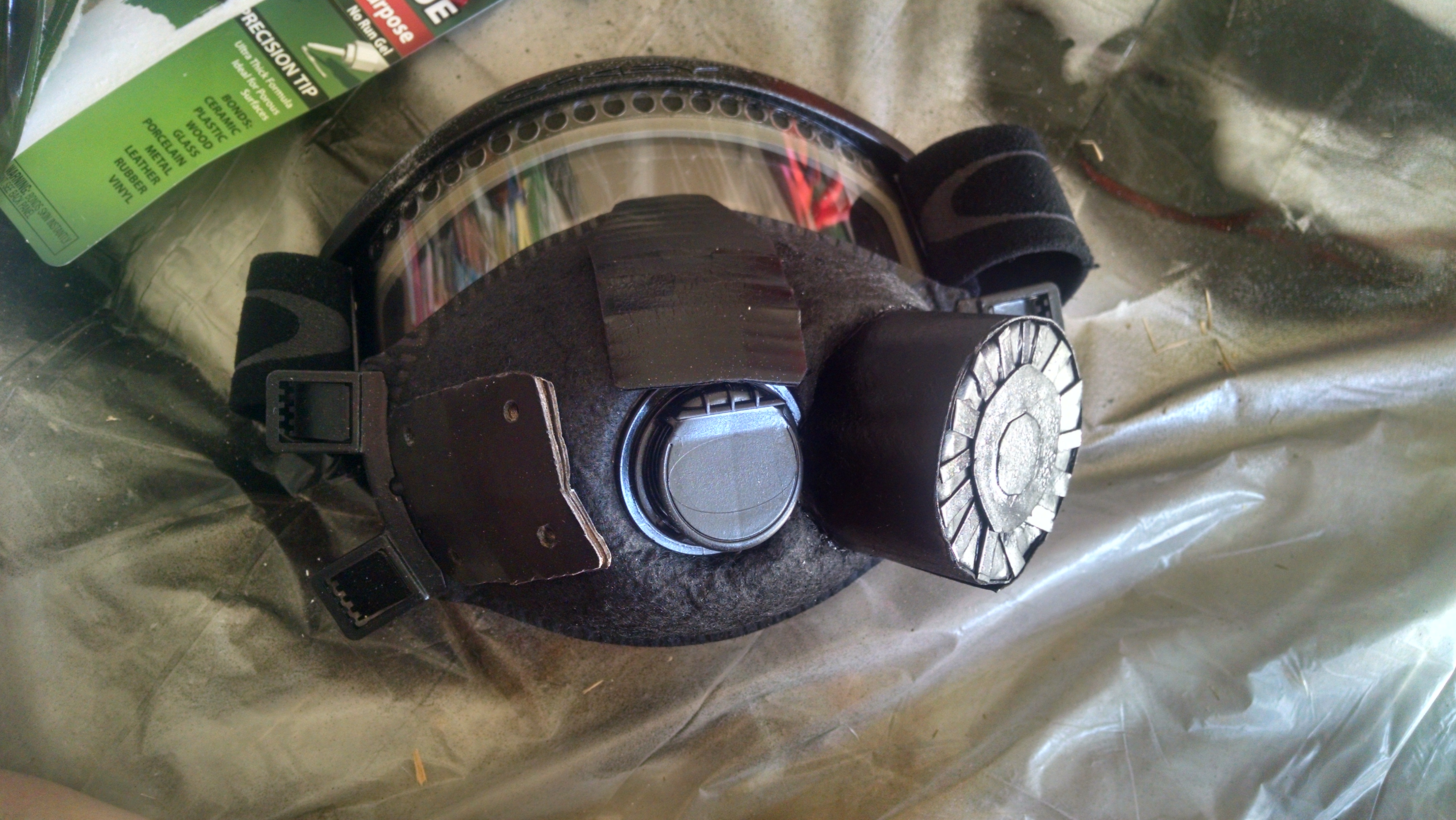 After the mask components dried, I Superglued them together. First, I glued the fumes mask to the ski goggles and let that set. Then I added the other pieces, one by one, since you have to patiently hold them in place with a firm grip until the glue dries. All in all, I was pretty pleased with how it came out.