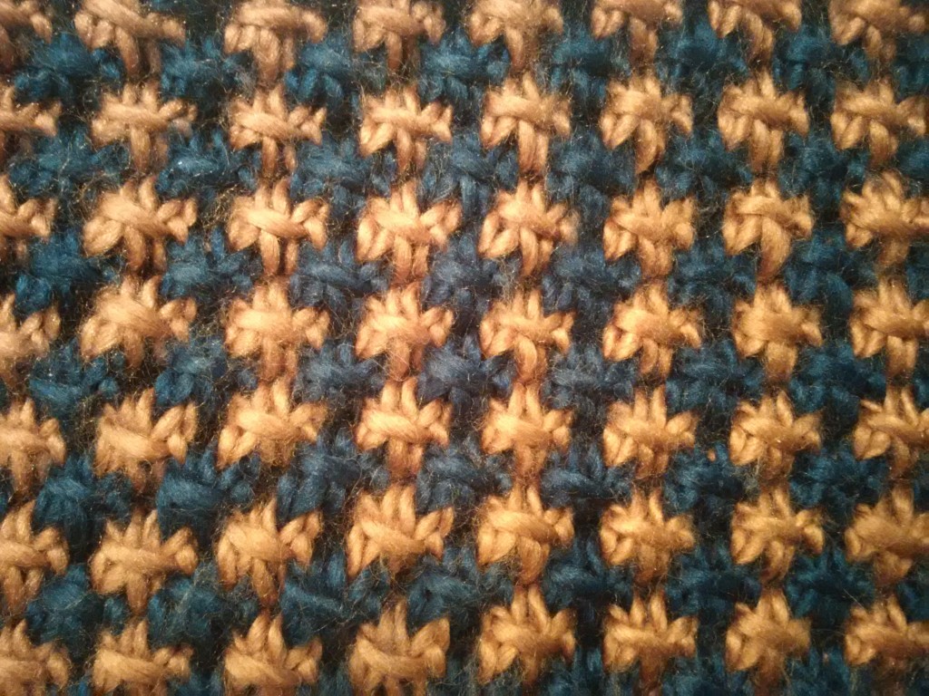 The third impetus for this project was that I love the look of crocheted colorwork, but I absolutely cannot crochet, so when I was browsing interesting stitches for my Ravenclaw scarf, and I found this stitch pattern, I was immediately struck by how it looked like crochet but was actually knit. Which is why this pattern is called: