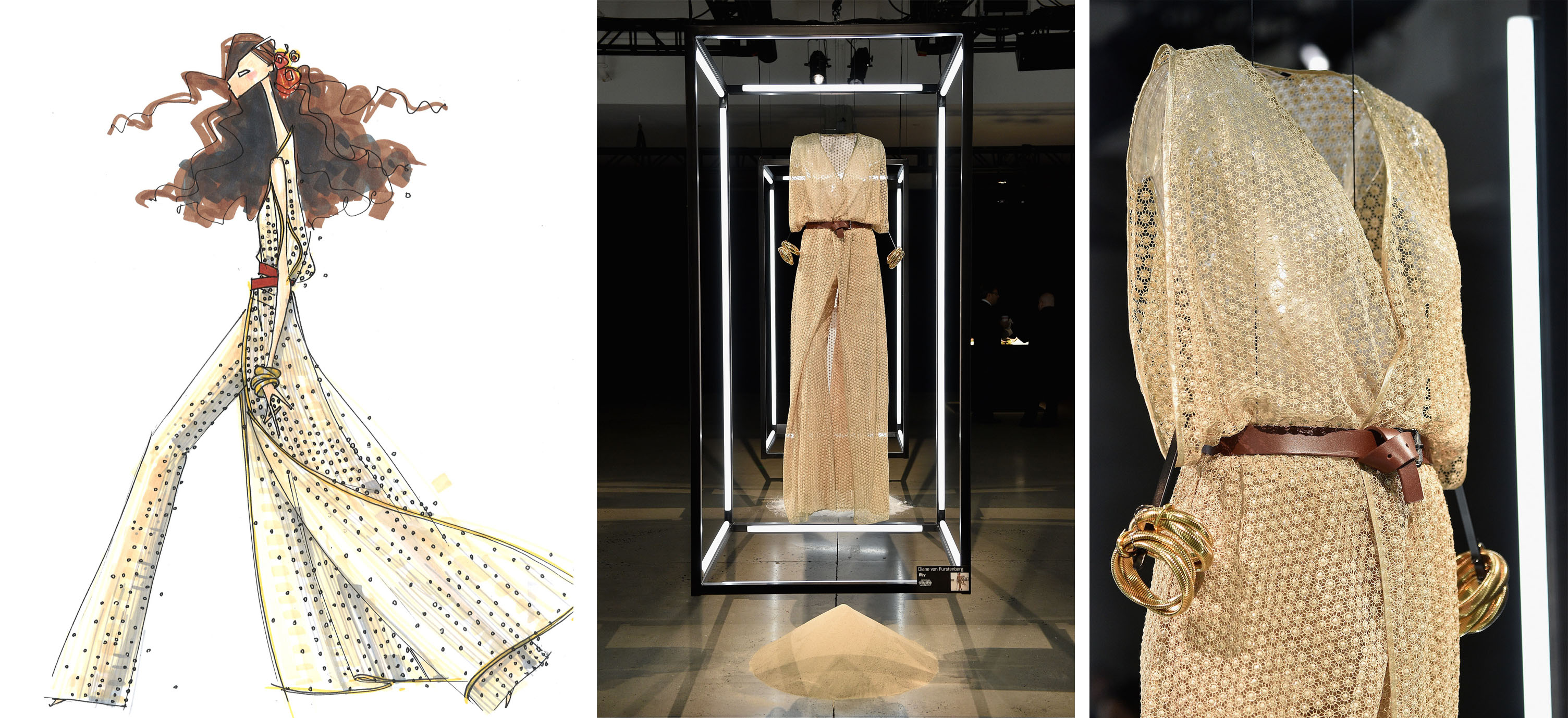 Like the Halston look, Diane von Furstenberg’s design embodies the designer’s aesthetic while make its cinematic reference point clear.