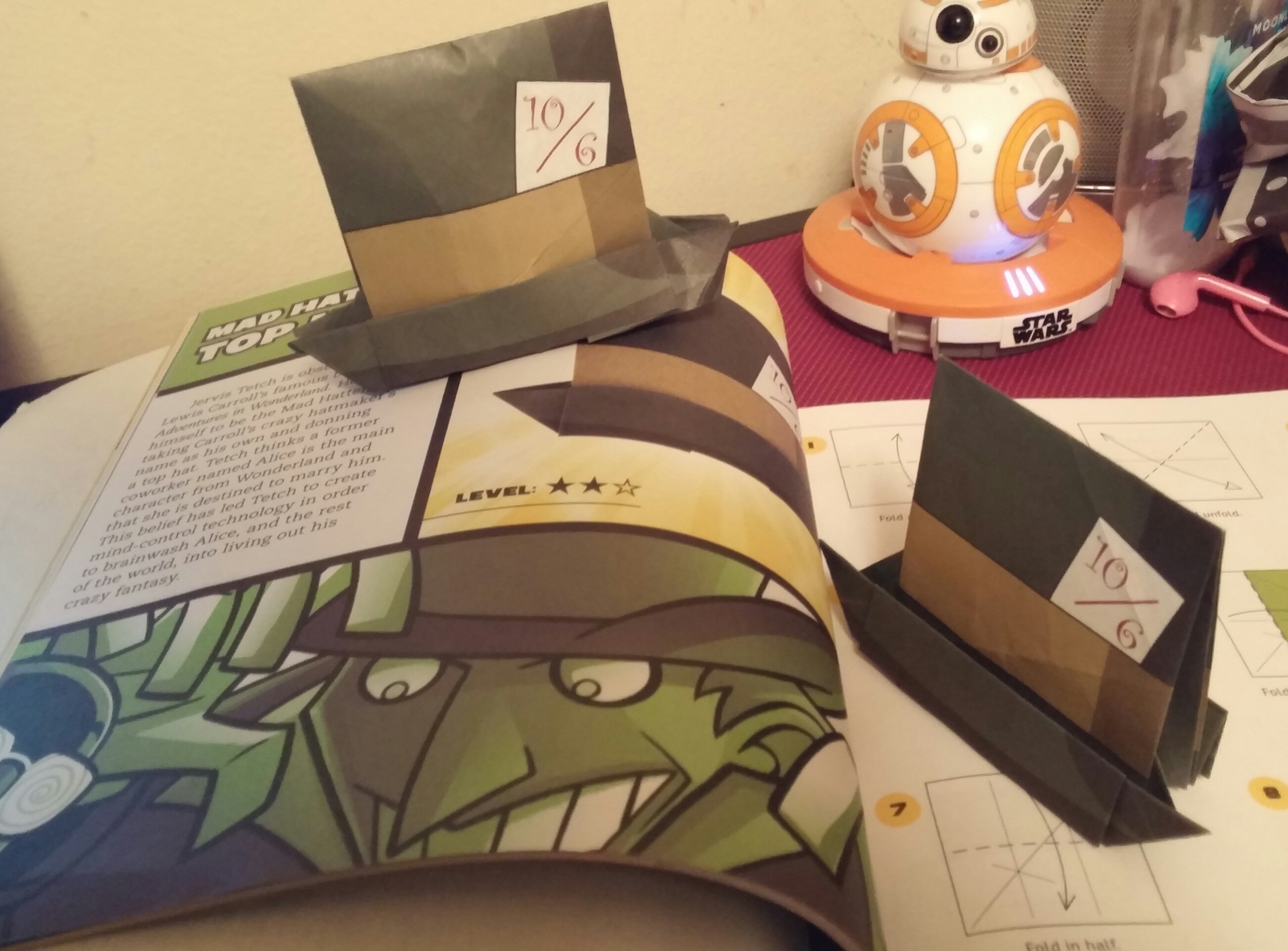 In the last few days of 2015, I was battling a terrible cold. The only thing I could do was binge watch Elementary and do some origami, but this wasn’t just any origami. It was John Montroll’s DC Super Heroes Origami: 46 Folding Projects for Batman, Superman, Wonder Woman and More! that I got from Capstone in exchange for an honest review. I got through most of it (and I mean A LOT) as you can see.