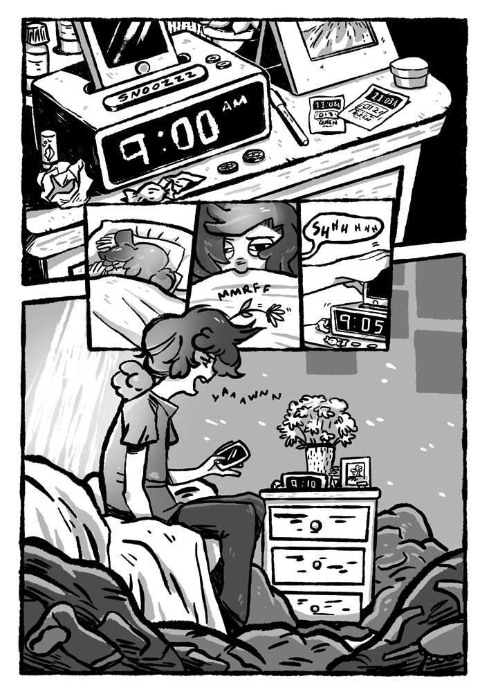Diversity was definitely something we were conscious of throughout the process: both of creators and stories. As the book gets bigger, we’re able to reach more creators, and include a wider range of voices in the collection. So we’re conscious of whose stories we’re choosing to tell, but we’re also striving to depict Toronto as it is–and ensure that our protagonists aren’t just white by default. So this volume is more multicultural than previous volumes, but we’ve also got more diverse sexualities, and gender identities. We’ve got a few stories involving same-sex romance, and one story I’m really excited about is Gwen Howarth’s auto-bio comic, charting the history of the Trans Pride March at Toronto Pride alongside her own transition to her authentic self. It’s a very touching personal story, and I’m really excited that Gwen wanted to share it with us.