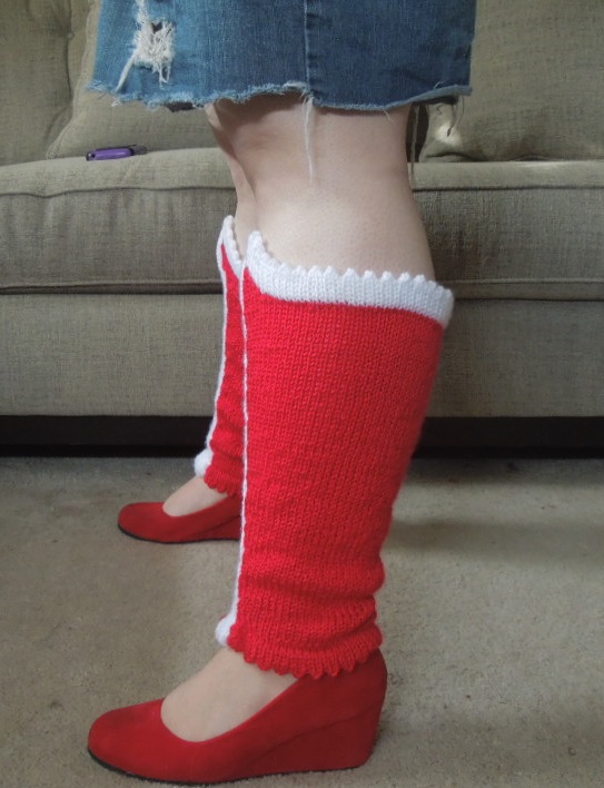 When you try on your legwarmer, it should fit snugly and stay up on its own, but because it’s knit in stockinette, it will be inclined to slide down when it gets overstretched. This isn’t a problem if you’re only wearing them as bootliners, as shown here.