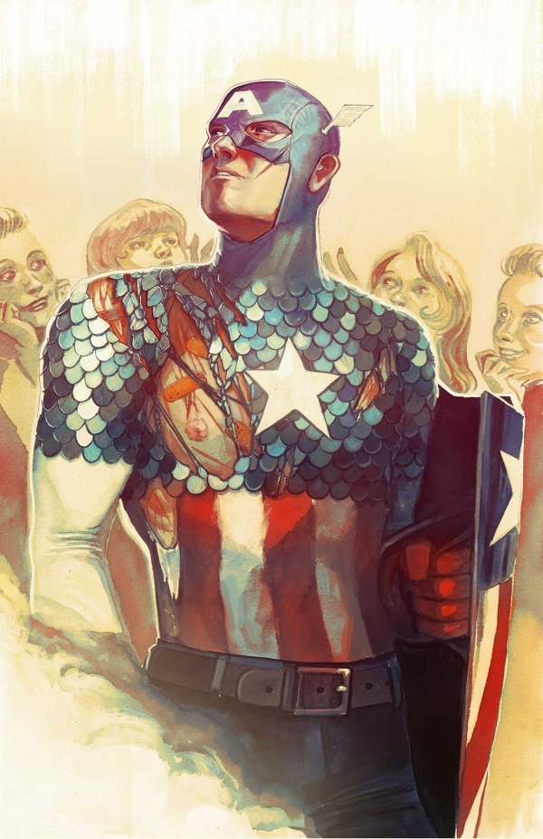 Among other things announced at the Women of Marvel panel was the Mighty Men of Marvel variant covers set for July, which seems an interesting time to make such an announcement. I wasn’t at the panel, so I don’t know what the audience response was, but it certainly implies a certain amount of turnabout’s fair play objectification. I’ve been disappointed by the press releases so far, which talk about this series as “inspired by” the Women of Power series, but fail to mention the fact that the point of having the Women of Power month (during Women’s History month no less) is because every other month is Mighty Men of Marvel month. But I’m not sure that’s what’s going on here. When looking at the covers that have been released, I was struck by the fact that the covers drawn by women are the ones I enjoy the most.