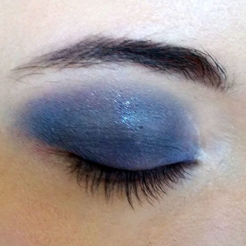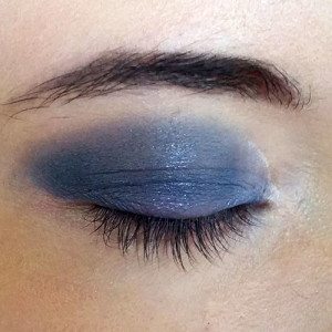 After that, I use a flat rounded brush from ECO Tools to pack on dark purple shadow onto my lid from NYX’s Smokey Eye Palette. Then I use ELF’s Contour Eye Brush to sweep on Geek Chic’s Both Eyes Open (yes, a Nick Fury shadow). I’m always very careful with black eyeshadow, since it can get messy quick. So fair warning! I typically tap on black shadow very gently and add more later if needed. Finally, I take the fluffy end of my ECO Tools Duo Brush to blend together Geek Chic’s Professional Curiosity (which is a shimmery purple/silver color) across my crease and upper eye. I blend the two colors together so there’s no harsh lines.