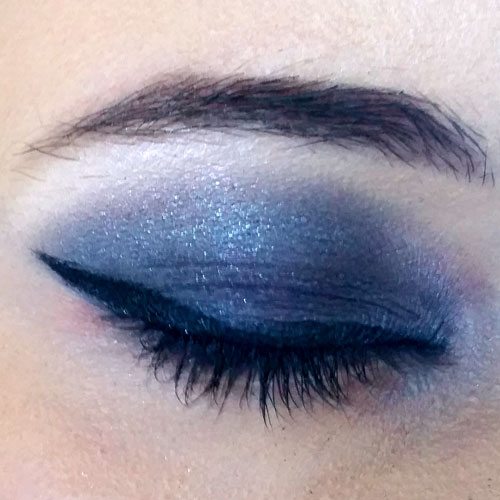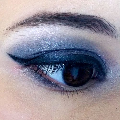 Since I couldn’t really see the black, I went back and added some matte black shadow from NYX’s Smokey palette over my crease. I still feel like you can’t fully see the black enough, but I didn’t want to push it. The final aspect I added was the eyeliner. Frankie often wears cat eyes for her shadow style, so that’s what I went with.