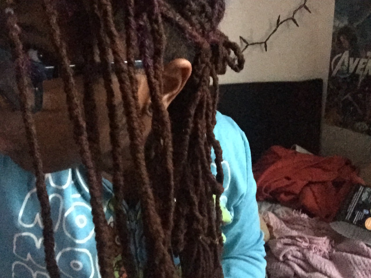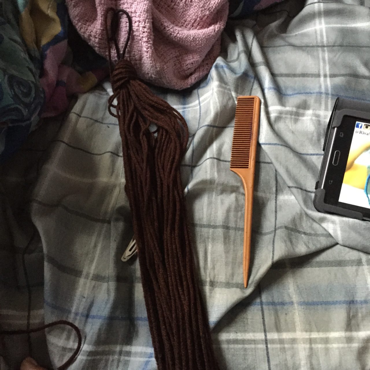 So, let’s get to this! Let me tell you right away, creating these dreads were very time consuming. You’ll need to have some form of entertainment with you, some water, and some food and take breaks as much as you can. Please, I can not stress this enough. Take as many breaks as you want and can.