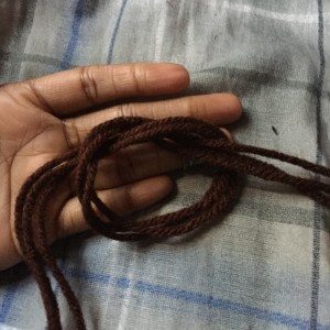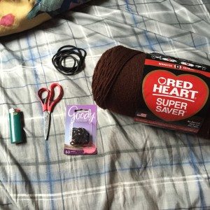 - Yarn (You can buy this at any craft store. Get the color Coffee or dark brown. You’ll need a Super Saver, depending on how much hair you have. If you have longer hair, you might want to go with two. For short hair to pixie cuts, one is completely fine.)