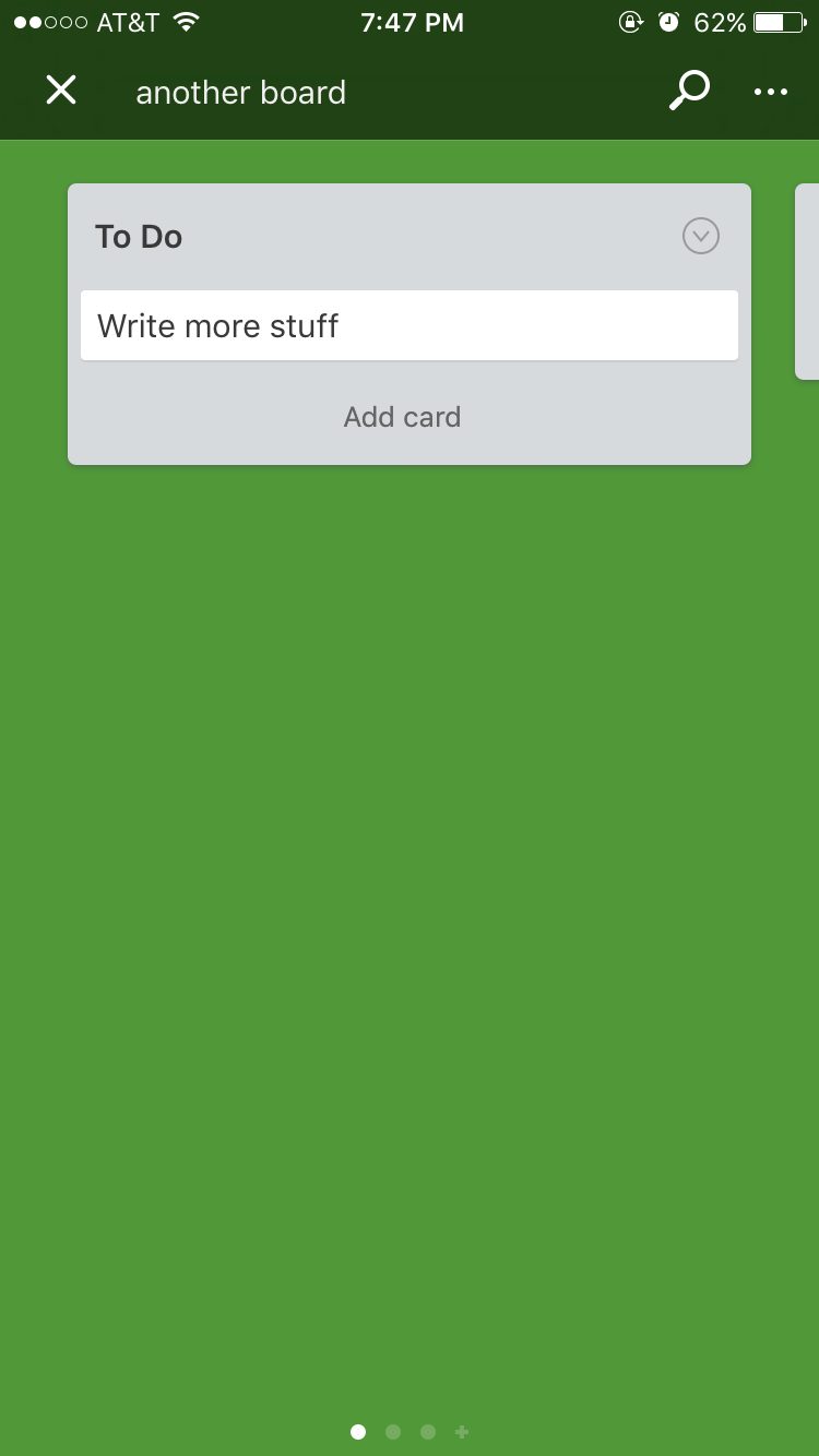 Once you figure out how everything works (and how they work differently on desktop and mobile), you can just start making boards and cards. This is great for me, because I can just go on a card spree for the next few weeks of things I need to do, and then put them down in my bullet journal for when exactly I need to get them done. As I said, I have this for nearly every non-work facet of my life: I have a list that tells me what books I have checked out from the library and when they’re due and a list of books to look out for at my local used bookstore on my “Books” board. I put cards on my “writing and other related stuff” board any time I have an idea or a deadline for one of my writing pursuits. I have dates for rehearsals and performances and notes about costumes. I have grocery lists and long-term house goals listed. Basically, my entire non-day-job-related life is managed through this simple blue and gray (you can change yours, but I like the starting color) wall of text. And I actually remember to look at it, which is more than I can say for my daily bullet journal.