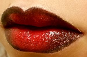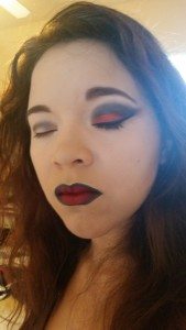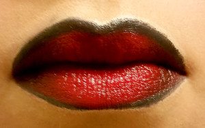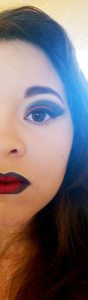 As you can see, when you do that ombre effect for your lips you have to blend the colors together, especially when they’re contrasting colors like red and black. An easy way to do this is by pressing your lips together in a smacking/popping motion carefully and gently. Don’t be discouraged if it doesn’t work the first couple times, you can always go back and blend some more if needed. A lip brush will help, but it’s not necessary. NYX makes ombre lipsticks that take away some of the process. I used Hearts and Spades, but substituted the red shade included with NYX’s Alabama and Monto Carlo—but they’re pricey. I recommend just finding a good couple lip liners—NYX’s are great and what I use—and just playing around with colors. Blending is the hardest part, and you can use your finger or a lip brush to better blend your colors together.