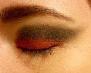 So here’s what I came up with for Red Robin’s inspired eyeshadow and lipstick look: