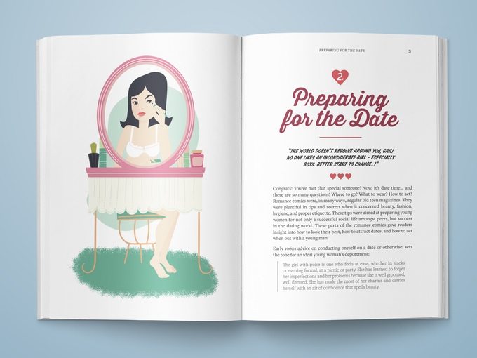 Though I received some really great feedback, no one was interested in publishing the book. I realized that if I wanted to make a book happen, I would need to self-publish. I wanted to write something that not only was smart, but fun, too. Being a historian by training, I cannot escape the deep seated urge to couch everything within a historical framework. However, I really believe in making history accessible and relevant to our lives today. The advice in the romance comics seemed like a perfect vehicle to tell a historical story and touch on the aspects of romance comics that are still pertinent today. There are a few mid-century specific tips thrown in there for good measure (hankie etiquette, anyone?), but most of the advice is simple, timeless, and universal.