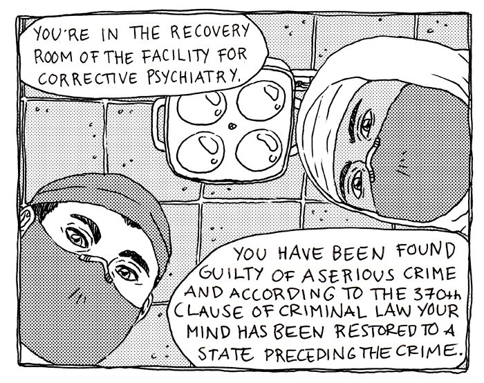 “Start Over Again” is a science fiction comic unlike any of Lehkonen’s other comics. It takes place in a world that largely resembles our own, but in this world people who commit serious crimes have their memories wiped and are given new identities so that they may attempt to start anew. The story plays with the Oedipal concept of ignorance; rather than granting bliss, ignorance can wreak havoc on those we try to shelter from harm. Lehkonen again reminds the reader of their brilliant color sense by dropping color strategically into the initially black and white comic to heighten its emotional impact, and the final result is a story that questions the value of memory and humankind’s ability to learn from past mistakes.
