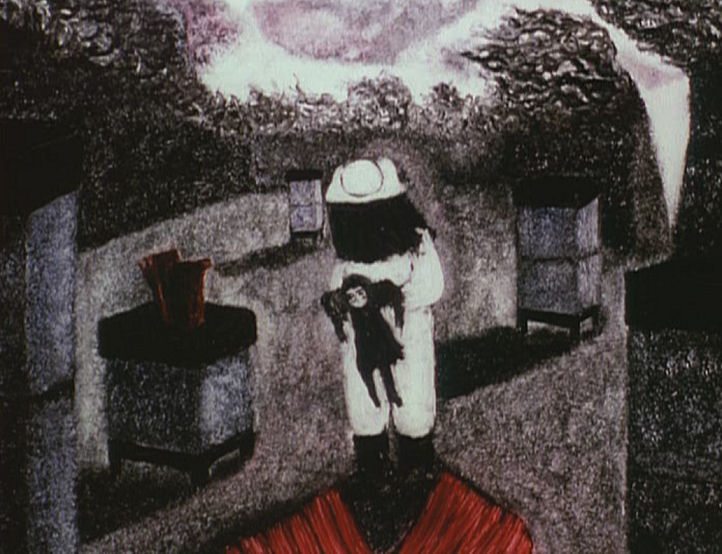 As Clare Kitson relates in her book British Animation: The Channel 4 Factor, Freeman had little interest in animation as a child. Nor was she initially keen to study the medium: her chosen subject at the Royal College of Art was illustration. Noticing that her art showed a narrative bent, however, her tutor nudged her towards the college’s animation department. As Freeman’s favoured technique involved making drawings on glass using soot, department head Richard Taylor introduced her to paint-on-glass animation. This technique was already established–North American animator Caroline Leaf being its best-known practitioner in the English-speaking world–but never achieved acceptance within mainstream animation, being better suited to individual work.