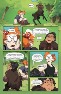 My only minor gripe is there were times that I couldn’t really discern the size proportions of the characters. There are panels where I felt like Jen didn’t change much at all despite the age and height difference. In the scene where Rosie investigates the Sentry’s footprint, if it weren’t for the bubbles and its known effect, I wouldn’t have noticed the physical change between Rosie and her moose when the bubbles burst.