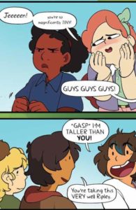Ayme Sotuyo’s art continues to reflect the liveliness of the series. Particularly I’m a fan of everyone’s facial expression in this issue. To the right, little Jen’s expression is me throughout 2017: