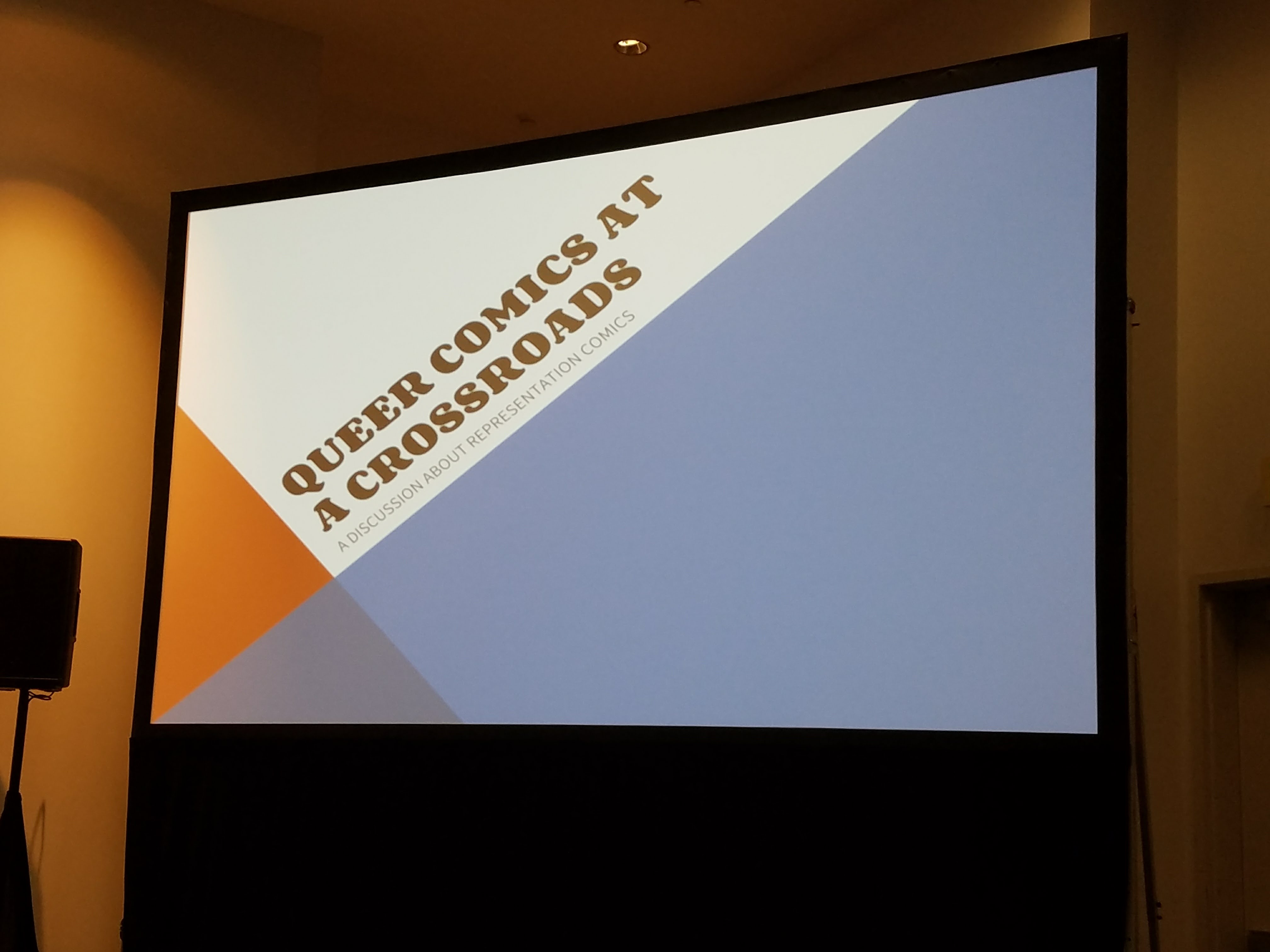 Year by year, media representation gets better and better despite some queer folx’ opinions the improvement is incremental, myself included. Panelists Sean Z. Maker (Ramonah Rising), Ajuan Mance (Gender Studies), William O. Tyler (Queerbait), and Sonya Saturday (Sonya Saturday’s Comics and Art), most of them in the webcomic sphere, shared queer highlights of the year. Sonya mentioned that she was “proud of the younger generation taking leadership roles where their parents/grandparents have failed them.” When the question of queer comics being inclusive came up, there was a general consensus from the panelists that characters tokenized created or made for marketing ploys are ‘annoying’. Panelists highly recommended the audience to go to zine fests and find and support indie presses that showcase such works. Before the panel ended, panelists were asked to name webcomics they were enjoying (Agents of the Realm, Rock and Riot, and Banquet). This panel was near the end of a very long day, but I came out of the room glad that I attended and hopeful for more inclusive comics in the near future.