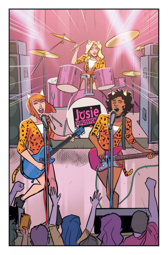From the opening scene, it felt like this issue was establishing that The Archies have come as far as they could as a band. In the Last Notes section, Alex Segura writes about how being in a band is tough – filled with “a lot of low points with small victories peppered in.” Over the course of this series, that was accurately represented through the band’s journey to this final gig. This tour has been filled with a lot of lows: bad shows, indecision, motel fires; and some amazing highs: playing with Tegan and Sara, getting advice from Chvrches, Blondie; and so was this issue. Following that theme of highs and lows, the Battle of the Bands is probably their best show, but is it enough? As they stand backstage listening to the praise being heaped onto Josie the Pussycats, they begin to doubt that it is.