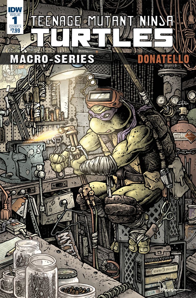 The Teenage Mutant Ninja Turtles are getting back to basics with a new “macro-series.” In this series, one issue will be dedicated to each turtle, digging deep into who they are, starting with Donatello. I have to admit I’m not the biggest TMNT fan. I must have watched the cartoon when I was younger because the theme song is burned into my memory (how else would I know Donatello “does machines?”) but I could tell you very few details about the characters and the world outside that song. This new macro series seems like the perfect opportunity to get to know these classic characters a bit better and it succeeds in that endeavour, to a point. We meet Donatello as he’s beginning work on a new and potentially dangerous invention and you get a close look at what makes him tick, but ultimately I still felt like this series expected to me to have a basic understanding of the TMNT universe, so some parts were more confusing for me than they will be for other readers.