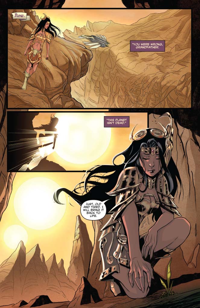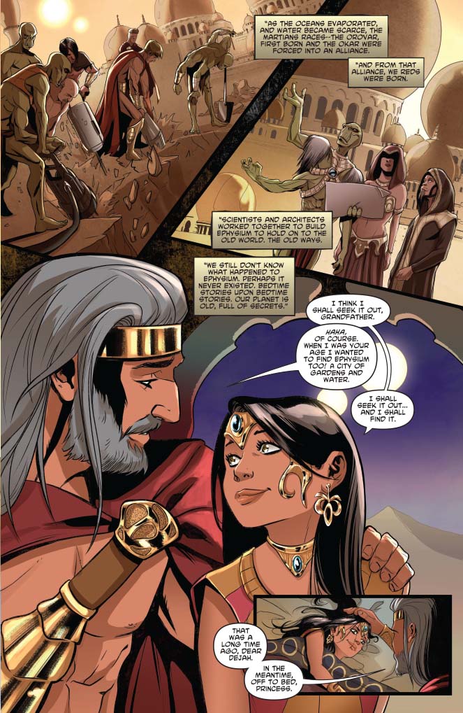 As John Carter’s love interest in the original stories, and iconic damsel in distress, it’s comforting to see stories like this where Dejah gets to exist outside of those roles. More so in this story where we get to take a step back into her past and consider how far she’s come. Don’t let the covers fool you, she remains a bold, brave, and determined woman, depicted on the inner pages as often with a sword in her hand as with books at her finger tips.