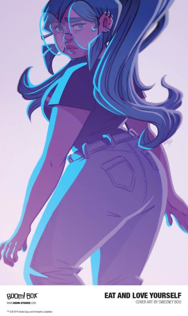 BOOM! Box has announced they will be publishing a new original graphic novel, Eat, and Love Yourself in April 2020, based on the successful 2017 Kickstarter campaign. The comic, by the creative team of Sweeney Boo and Lylian, tells the story of Mindy, a twenty-five-year-old woman, living with an eating disorder. She lives in shame of her body and hates everything about her life except her friend Shane and her cat. But then one day, she accidentally finds a magical item that gives her a chance to revisit her past and try and put her life back on track. Will she be able to find her way back home and a way to accept and love herself no matter her size?
