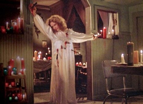 The scars and lesions that spontaneously appear on Regan’s body never affect Carrie; instead, it is Carrie’s over-pious mother who is disfigured. Attempting to dissuade her daughter from going to the school prom, Mrs. White resorts to self-harm in a manner recalling the Biblical demoniac’s habit of “crying and cutting himself with stones”: