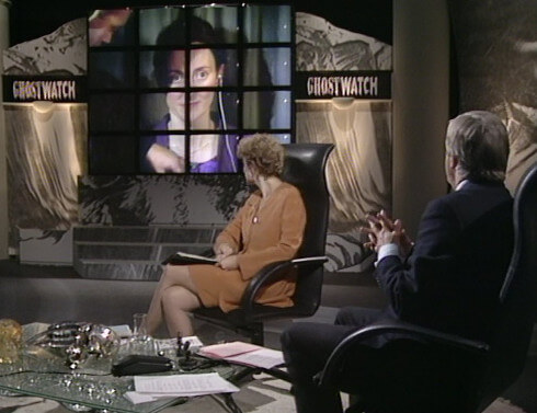 After the drama’s halfway mark, the spirit begins acting up before the camera. We see a sort of “Exorcist-light” sequence where Suzanne lies in bed breaking into short convulsions, scratches resembling the claw marks of a cat all over her face; although less spectacular than Regan’s ordeal, the format of the drama lends greater verisimilitude. We glimpse a ghostly figure standing behind a door, and a technician is seen injured — possibly dead — with a shard of glass in his head. Like most of the better found footage horror, Ghostwatch embraces the ambiguity and subjectivity of its format: it is never entirely clear what is happening in the story’s final minutes, but it is safe to say that the ghost has come out on top. The actual conclusion of the Enfield affair, with the phenomena simply fading away over time, would never have made for a dramatic climax.