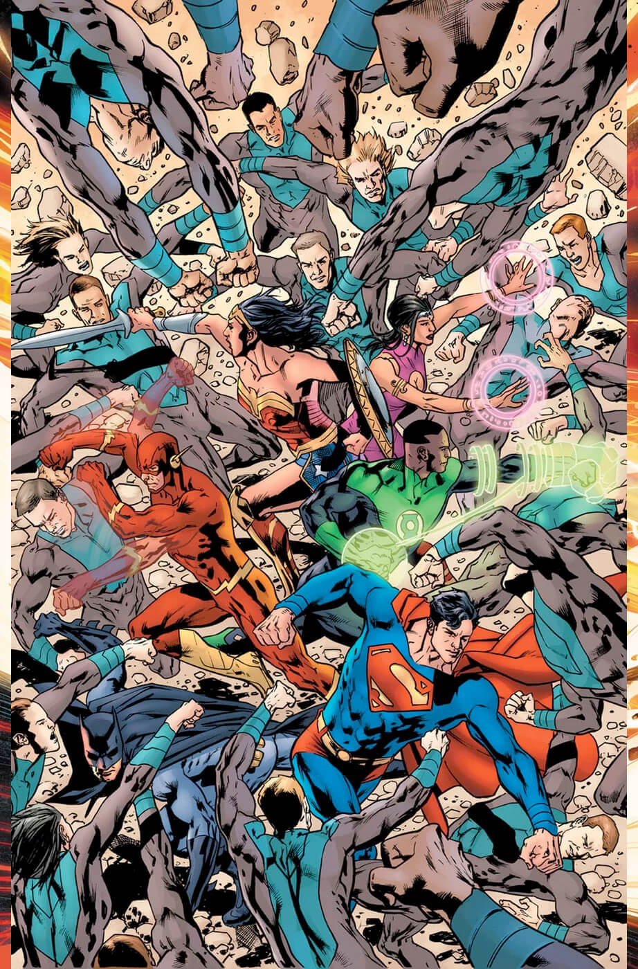 art by RAFA SANDOVAL, JORDI TARRAGONA, SCOTT KOLINS, STEPHEN SEGOVIA, DAVID MARQUEZ, BRYAN HITCH, FRANCIS MANAPUL, RILEY ROSSMO, and others