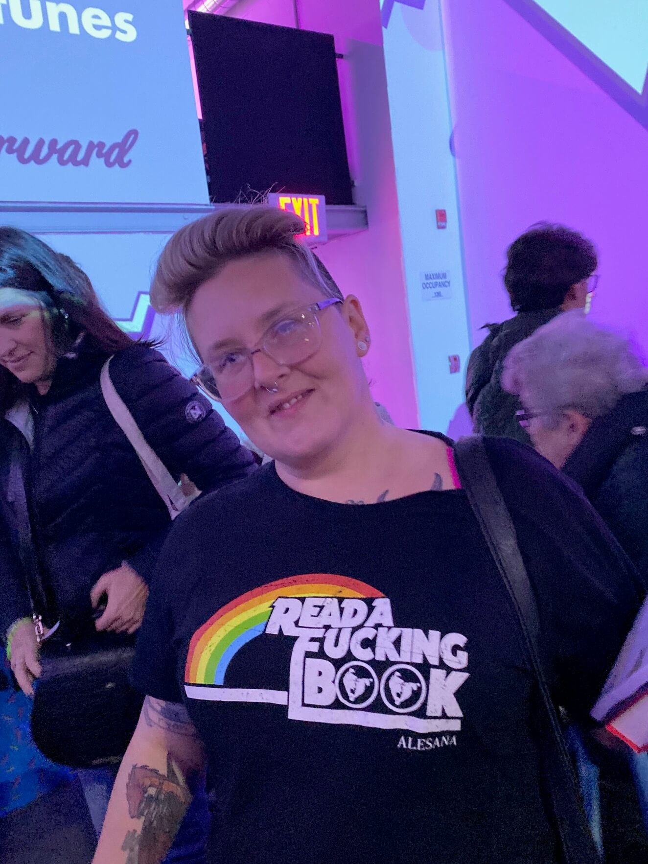 As with any event of this kind, a big part of the attraction is the chance to be in a room with a lot of people who share your excitement over books. I was pleased but not shocked to see a lot of great tee shirts indicating shared priorities.