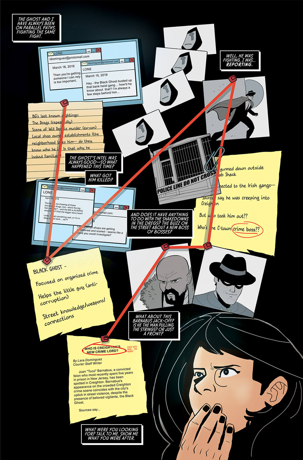 But there are still lots of comics on the horizon. You can find Taylor Esposito’s name on a number of upcoming books this winter, including Bettie Page and Elvira from Dynamite, Cult Classics and Finger Guns from Vault Comics, and No One Left to Fight from Dark Horse Comics, as well as the five-issue comiXology Original, The Black Ghost, which wraps up this month.