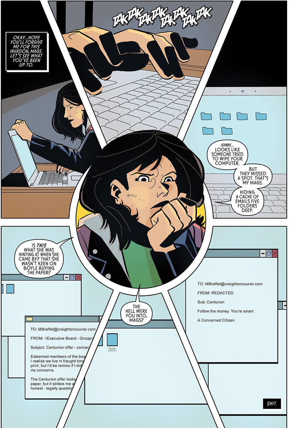 This is one of the unexpected benefits Esposito has found in working at The Kubert School. “I don’t expect all of my students to become letterers — it’s not a glamorous job — but they will know why it’s important.” Writers can learn to be more economical with words, while artists can better understand where to focus attention. Because, Esposito stresses, “a comic page is a whole package and the lettering is part of that.” All the pieces need to be considered as part of the composition before being handed over — preferably not at the last minute — to the letterer.