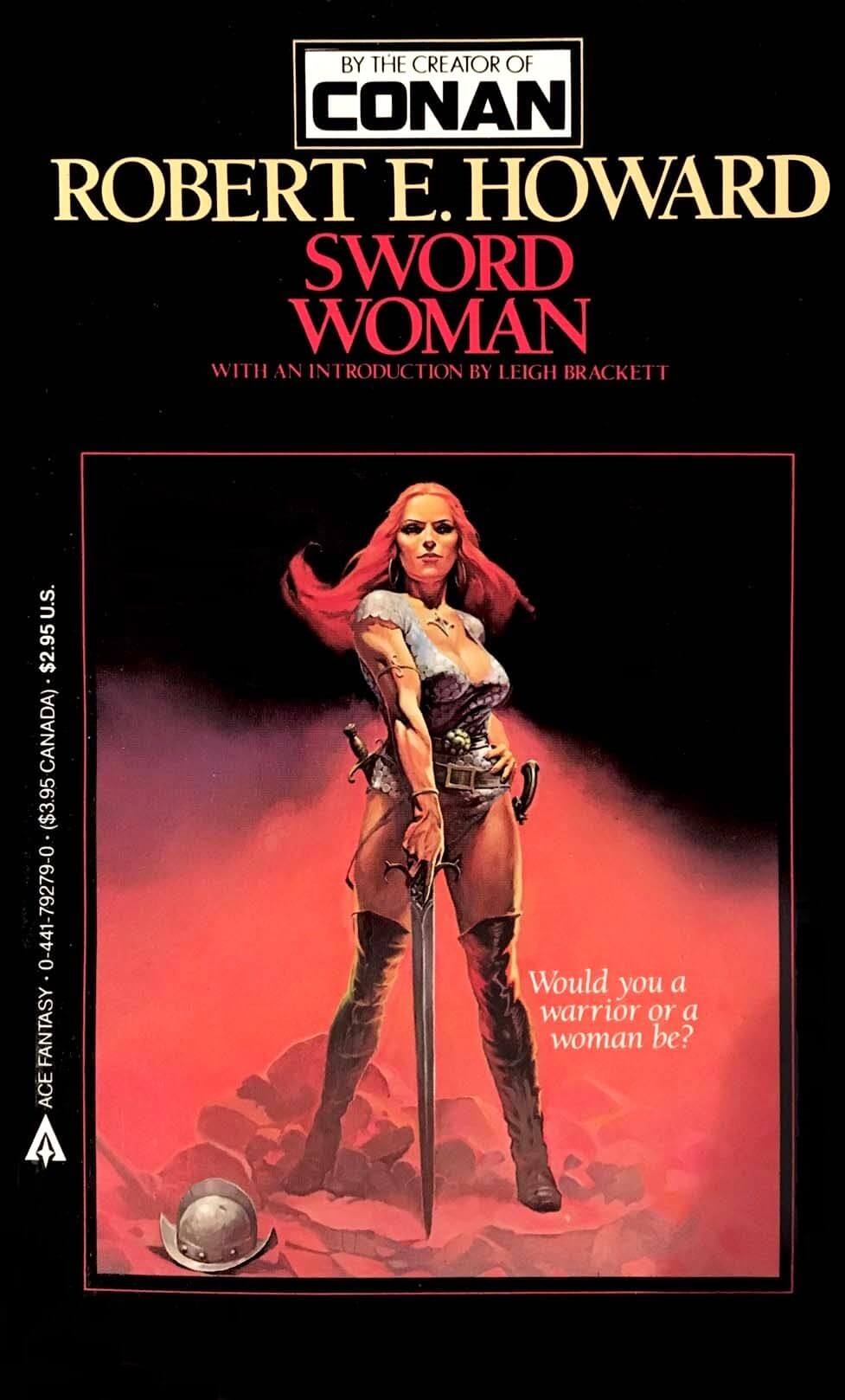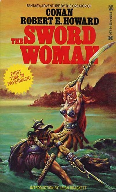 Then in 1977 came a paperback entitled The Sword Woman, which gathered together the three Dark Agnes stories alongside a pair of unrelated pieces by Howard. Readers unfamiliar with Agnes – and, at the time, that would have been a sizeable majority – were given a preface by pulp author Leigh Brackett that introduced the previously-obscure heroine. Brackett begins her piece by lamenting the fact that Howard never wrote more stories about Agnes: