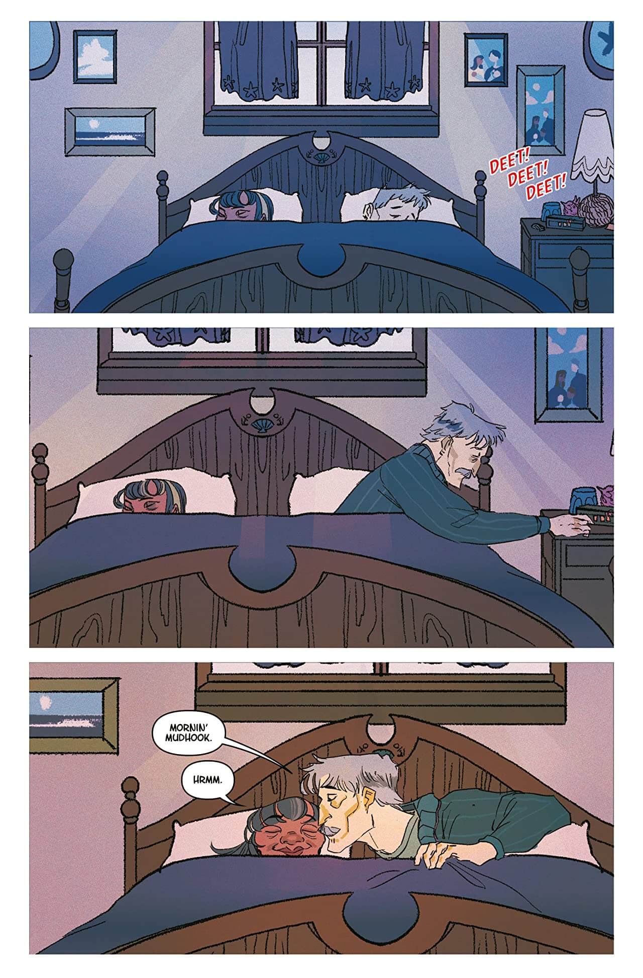 I am a sucker for quiet pages. For me, this means panels where the writer foregoes words and lets the artist truly bring the story to life. This first issue welcomes the reader to a warm, loving morning routine, taking its very sweetest time to introduce us to a loving couple with one partner rising with the sun to start his day. The rhythm is familiar to any one of us, including that all-important time spent with the coffee machine, and while it seems mundane, lulling the reader into that sense of warmth and routine is instrumental in hammering home what happens on the next few pages as the couple discovers that their lives as marina owners have inexplicably and unbelievably changed due to all the water at the wharf vanishing.