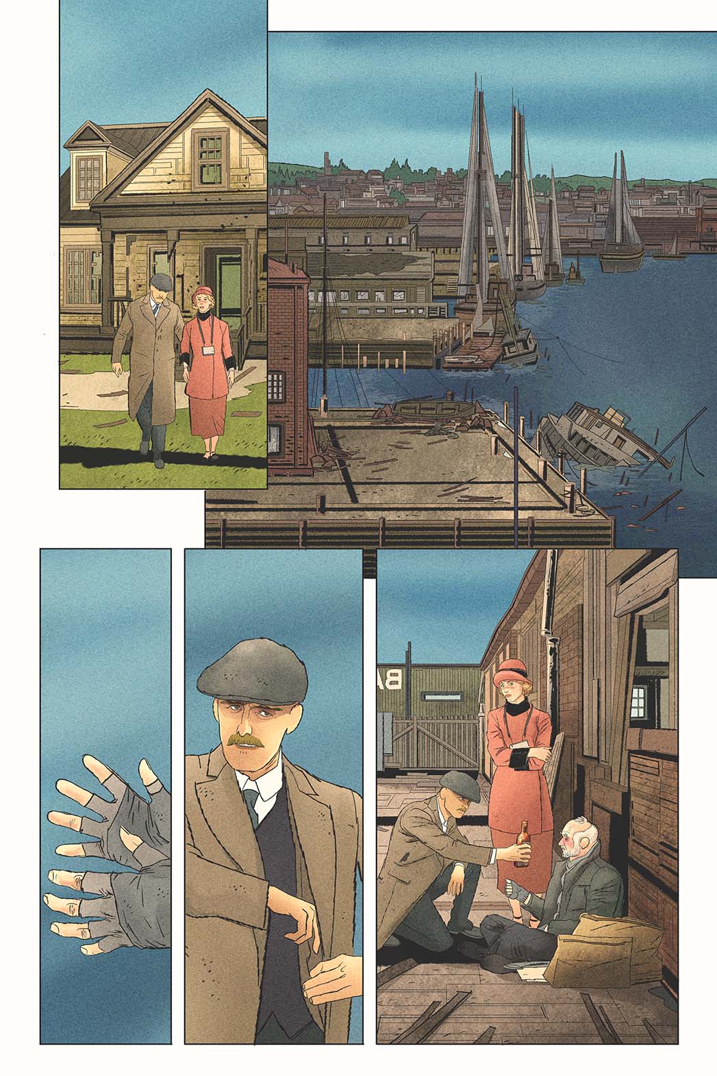 Miskatonic #1 starts off with a literal bang as Ephraim Waite’s house in the Miskatonic Valley, Massachusetts, is blown-up by a mail-delivered explosive, killing Waite. With evidence of a possible connection to the anarchist bombings of 1919, new Bureau of Investigation acting director J. Edgar Hoover sends agent Miranda Keller to Innsmouth to team up with retired detective Tom Malone to investigate Waite’s death. Their first person of interest is Waite’s daughter Asenath, a student at Miskatonic University in nearby Arkham. But before they head to Arkham, Malone suggests they speak to Zadok, a man who witnessed the explosion. Zadok tells them a strange tale involving a dangerous and shadowy cult called the Esoteric Order of Dagon and fish-like humanoids called Deep Ones, who live underwater at Devil’s Reef. Despite Zadok’s warnings that the Deep Ones know they’re poking around in Innsmouth, Keller and Malone decide to stay for the night. Unfortunately for them, they find out firsthand what Zadok was trying to warn them about.