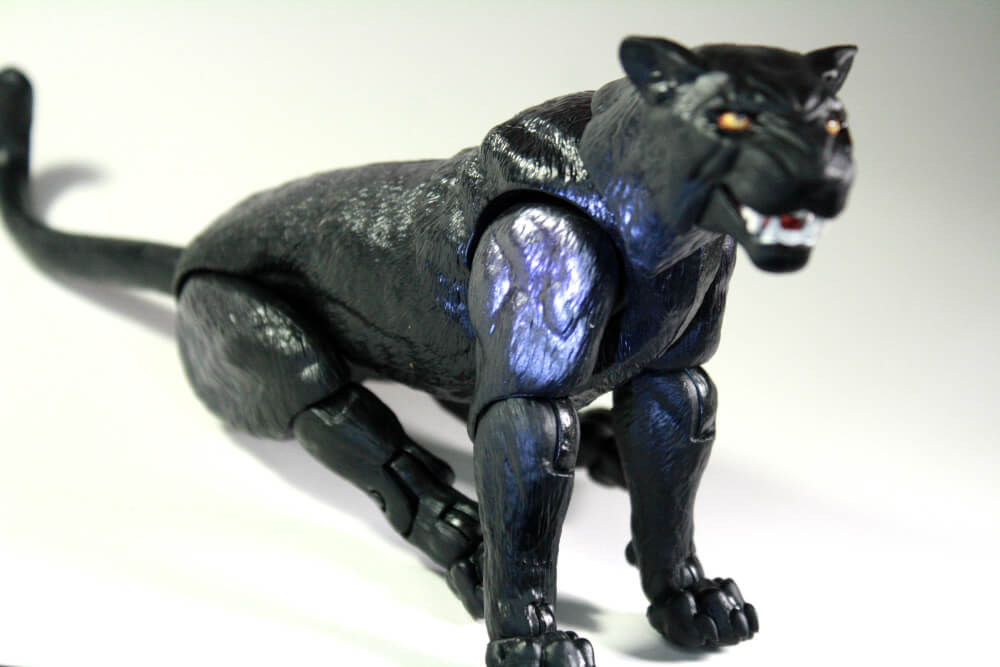 Generally, when you have a figure with this level of articulation and unique sculpt-work, any pack-ins you get with that figure are non-articulated; think Jeff the Land Shark, who came with the Marvel Legends Shiklah. But because of the nature of this set, Guenhwyvar is also super-articulated, giving us our first big cat sculpt from Hasbro since (I think) the G.I. Joe Sigma 6 line, an old 8″ scale line that produced animal companions such as tigers and wolves. The tiger from that line was retooled into Zabu for a Ka-Zar and Shanna set some…thirteen years ago? Fourteen? There hasn’t been a big cat since then, is my point. Guen is sculpted with care, and given a coat of iridescent purple over her black fur to reflect her extradimensional nature.