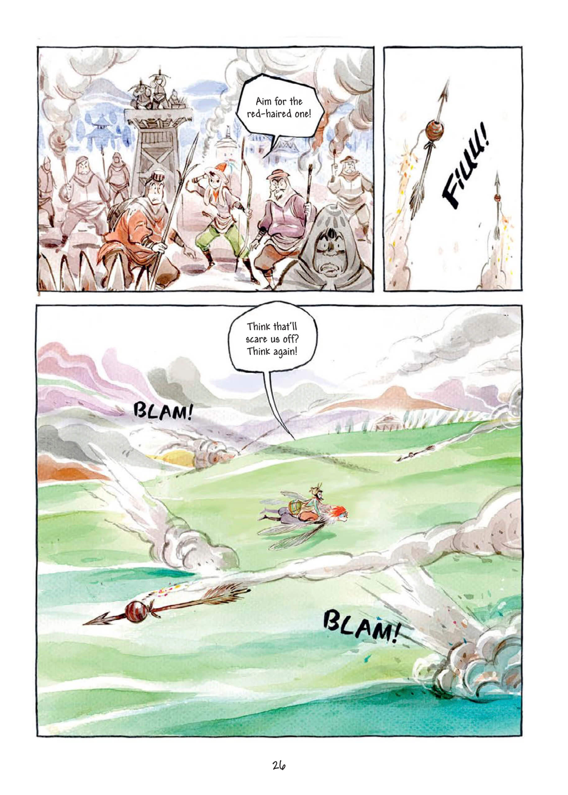 For Seekers of Aweto, Hunter did not have the opportunity to work directly with Jun on the translation. “We didn’t have a shared language through which we could communicate, which meant that when Lerner had questions, they went through Jun’s agent or the agent who coordinated the translation rights. There were multiple links in the chain, which meant a fair amount of follow up, double checking, etc., to make sure the Lerner edition would honor the original intent.” Fortunately, the indirect collaboration process did involve the expertise of translator, Edward Gauvin. “He’s one of the best comics translators working and was particularly suited to this project.” Hunter describes The Hunt is On as an unusual situation because, although Jun is based in Beijing, the French version of Seekers of Aweto was published first through Gallimard, and the editorial oversight that comes with. Gauvin typically translates from French, but was also able to consult regarding the Mandarin style of layout to ensure clarity of the Jun’s intent. “The final translation is the result of those efforts,” says Hunter. “A lot of fastidiousness from everyone involved.”