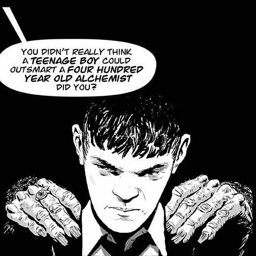 “FU-tant”, illustrated by Mike Donaldson, has the vaguely X-Men-esque setting of a university for youngsters with superpowers. It uses this premise to satirise class-ridden British boarding schools: a bullying “Alpha”, who has the gift of super-intelligence, derides a psychic schoolmate as a pathetic “Gamma girl who dumps her feelings on others.” This idea would have been enough as the basis for a high-concept comic in itself, yet it is confined almost entirely to a single page, the story moving on as its protagonist graduates to fight shapeshifting mantis-like creatures before stumbling onto the existence of a multiverse.