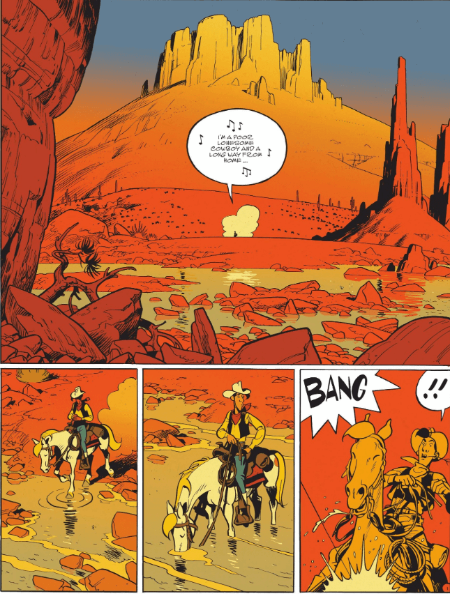 For more than 20 years, readers enjoyed the adventures of the world’s greatest cowboy, Lucky Luke, “the comic strip character who can shoot faster than his own shadow.” Created by Morris and later joined by René Goscinny (of Asterix and Obelix fame), Lucky Luke is a bande dessinée where the titular hero and his trusty steed travelled the American Wild West dealing with various villainy and intrigue over 79 volumes. Now, Izneo and Cinebook brings Lucky Luke back with a a digital twist for English readers.