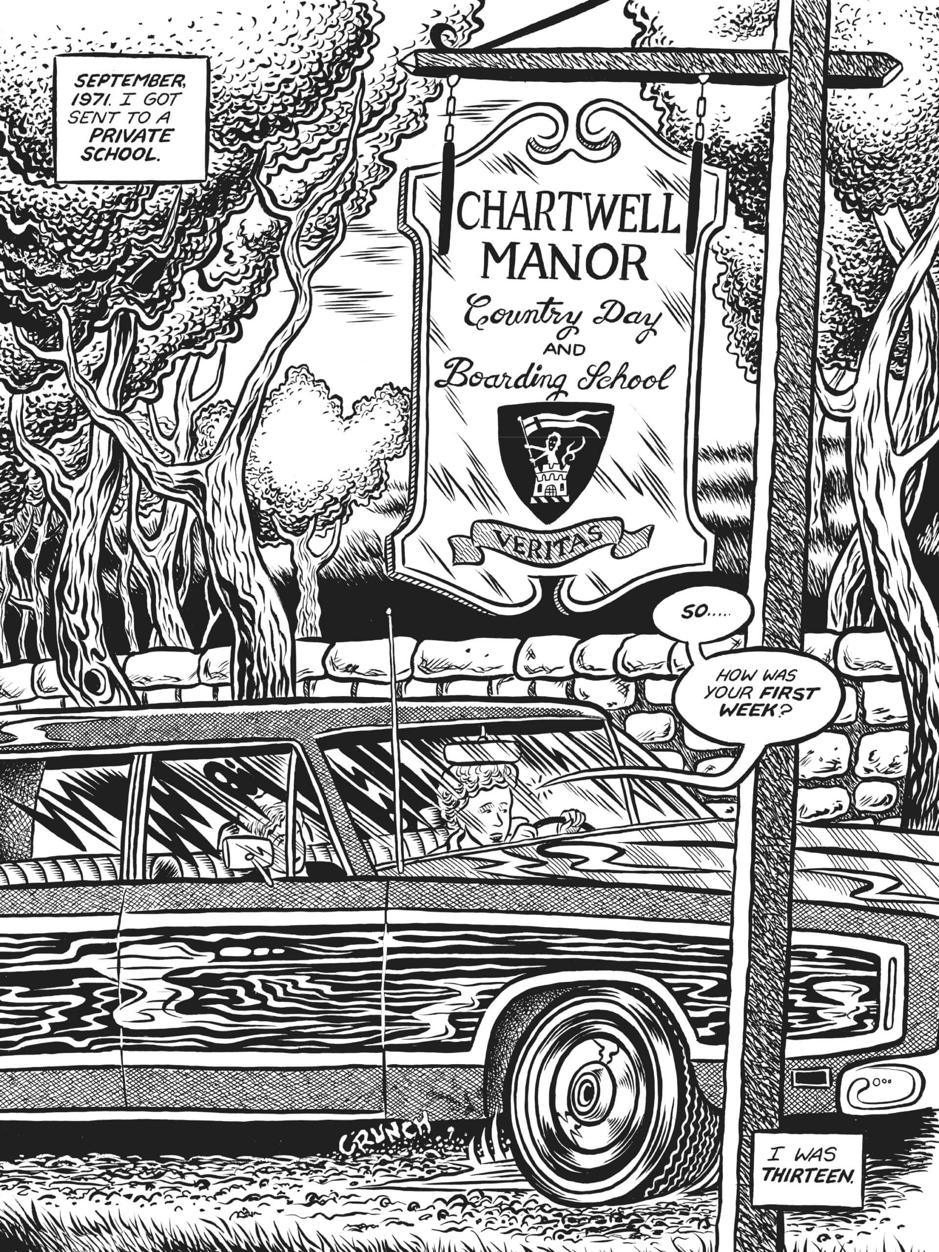 Sometimes, your trauma stares you right in the face, but you have been so carefully conditioned not to see it. In the 1970s, comic artist Glenn Head spent two years at Chartwell Manor, an “elite” school where students were subjected to the kind of abuse that leaves permanent scars, inside and out, shaping their lives. Now an adult, Head takes a very personal walk down a traumatic memory lane to tell the raw and honest story of his experience and how it affected him, finding release in the telling. Ahead of the release of his graphic memoir from Fantagraphics this month, Head answers a few questions about Chartwell Manor for WWAC.