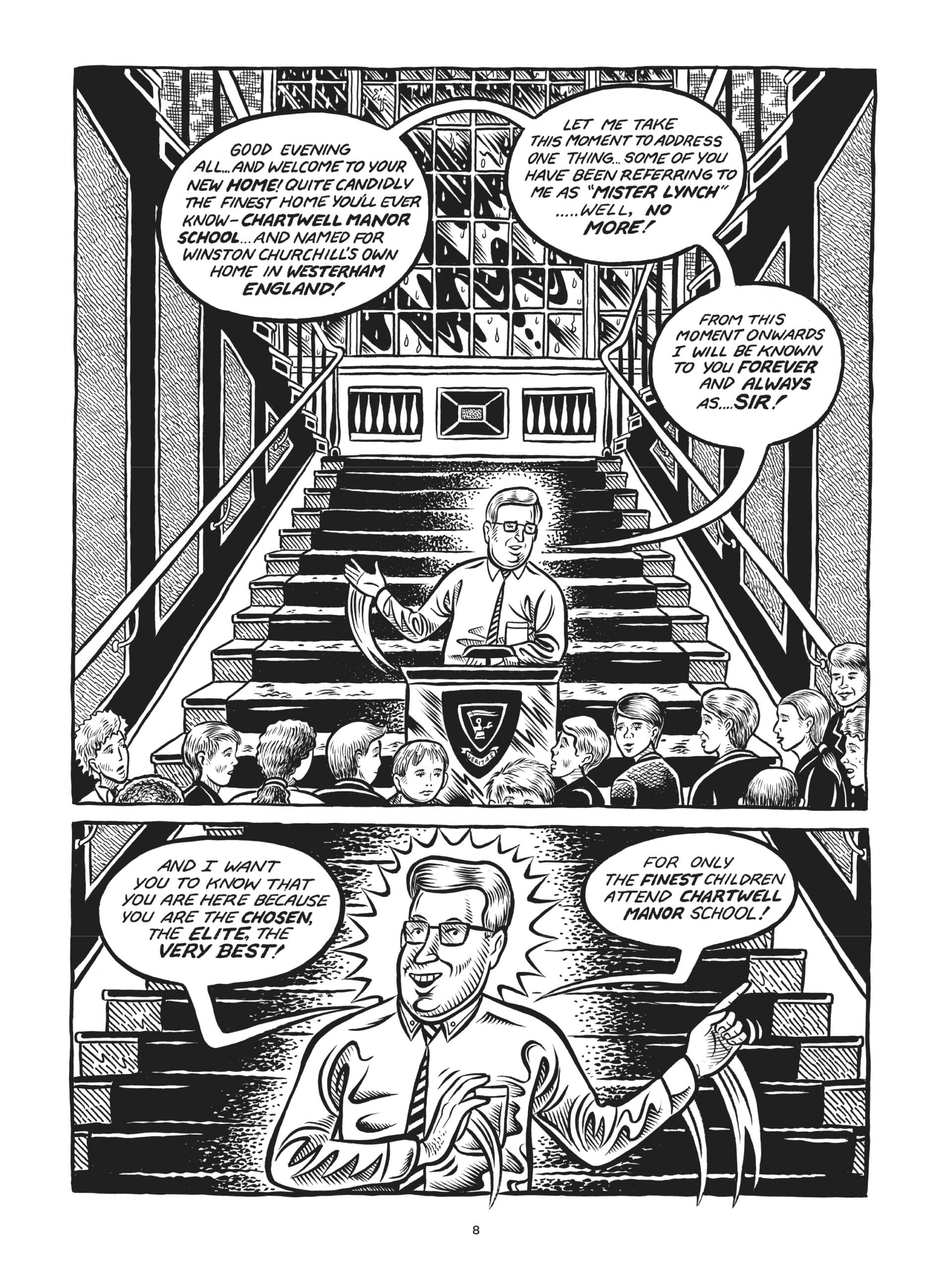 I can tell you it’s weird though, to see my abuser, Terrence Michael Lynch as this cartoon character cavorting across the page. He was a violent, dangerous, poisonous character who damaged a lot of people. Lynch was really kind of absurd, an evil clown, larger than life, charming, manipulative. He was begging for the comic book treatment. He got it.