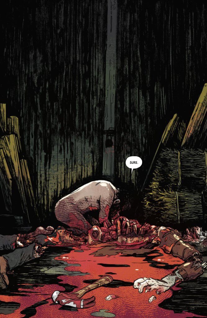 Paul: It’s myself, as both Jacey and David, the father I want to be and the kid I was. I’m a huge believer in found families because I think they’re often better than the other kind. My own guilt, where to put it, how to handle it, these two are both wrestling with that issue, and they’ve found a balance. Them finding the Important Man upsets that balance, and so we’re stumbling through horrors to a conclusion that’s rushing at them.