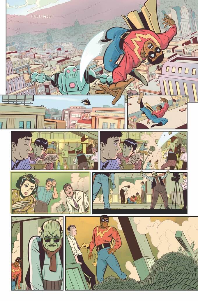 On top of that, Alter Ego is a story about identity, about the person you are when you’re anonymously walking down the street, when you want to show off, when you’re alone. It’s about the idea of doing the “right” thing, even when no one’s watching. That all blends into this idea I have about superheroes, of trying to be a good person while also knowingly putting on a performance…and what better setting for a story about performance than the glitzy, grimy Golden Age of Hollywood?