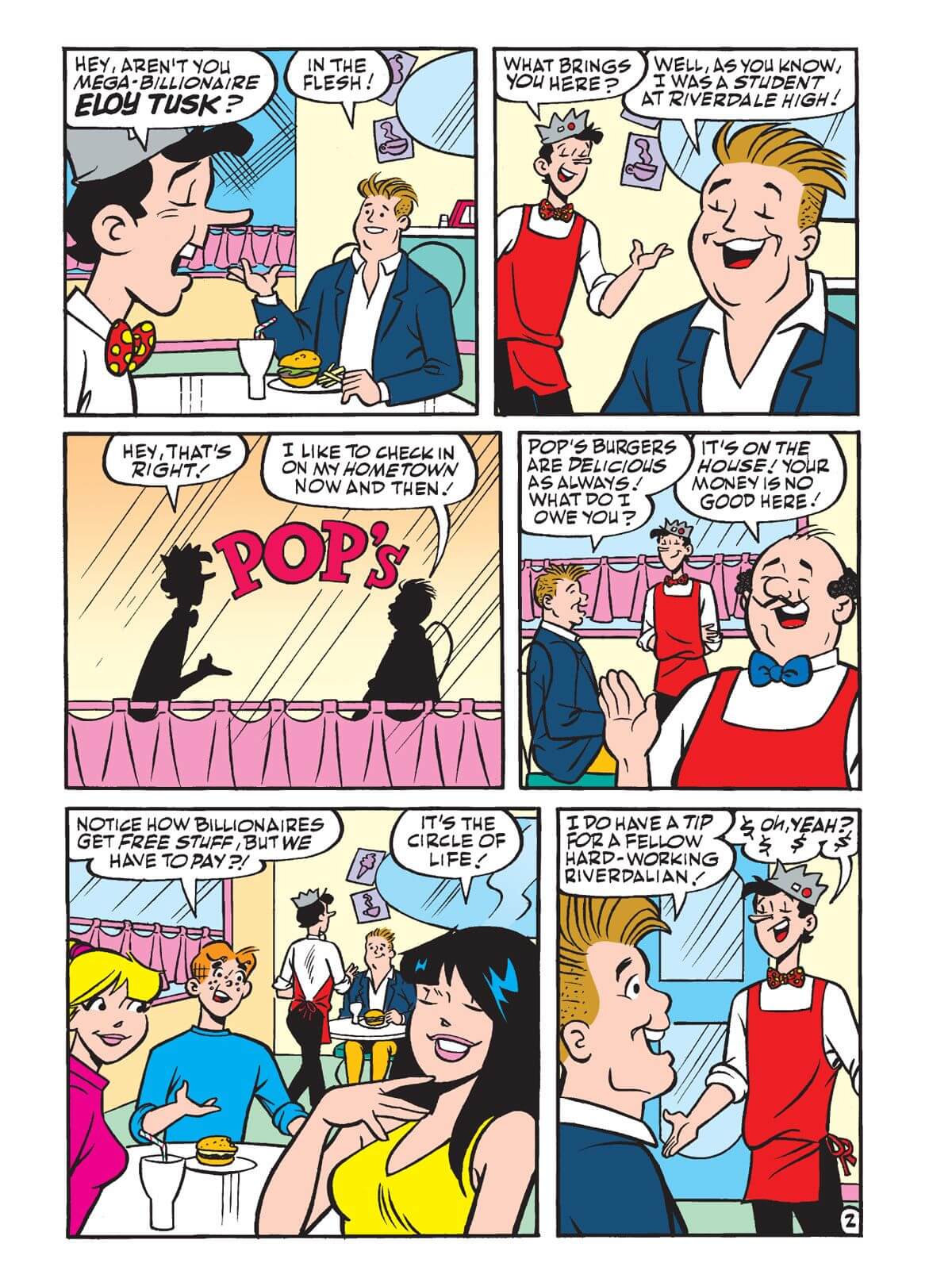 This month’s World of Archie Jumbo Comics Digest spotlights two brand-new stories. In the first tale, Pepcoin Millionaire, Jughead is introduced to cryptocurrency and makes a mint thanks to the advice of Eloy Tusk. Too bad he can’t remember the password to access his funds!