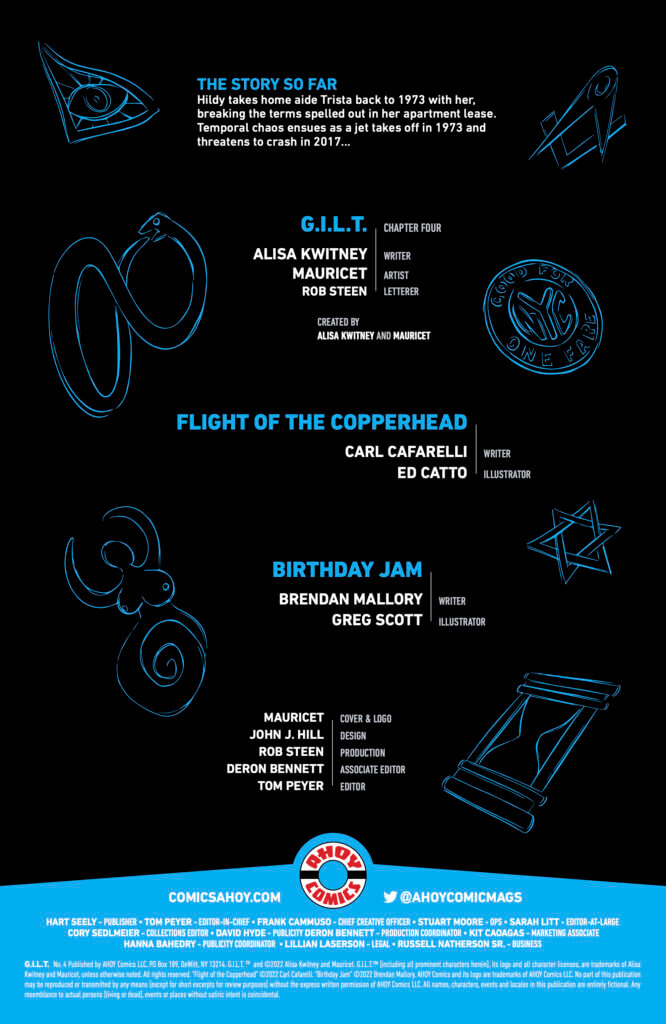 Urban fantasy fans have a new heroine in Hildy Winters, stylish resident of New York City’s Upper West Side and member of the Guild of Independent Lady Temporalists. WWAC offers this exclusive preview of Ahoy Comics’ G.I.L.T, #4, the penultimate issue of this witty time-travel adventure series by Alisa Kwitney and Mauricet.