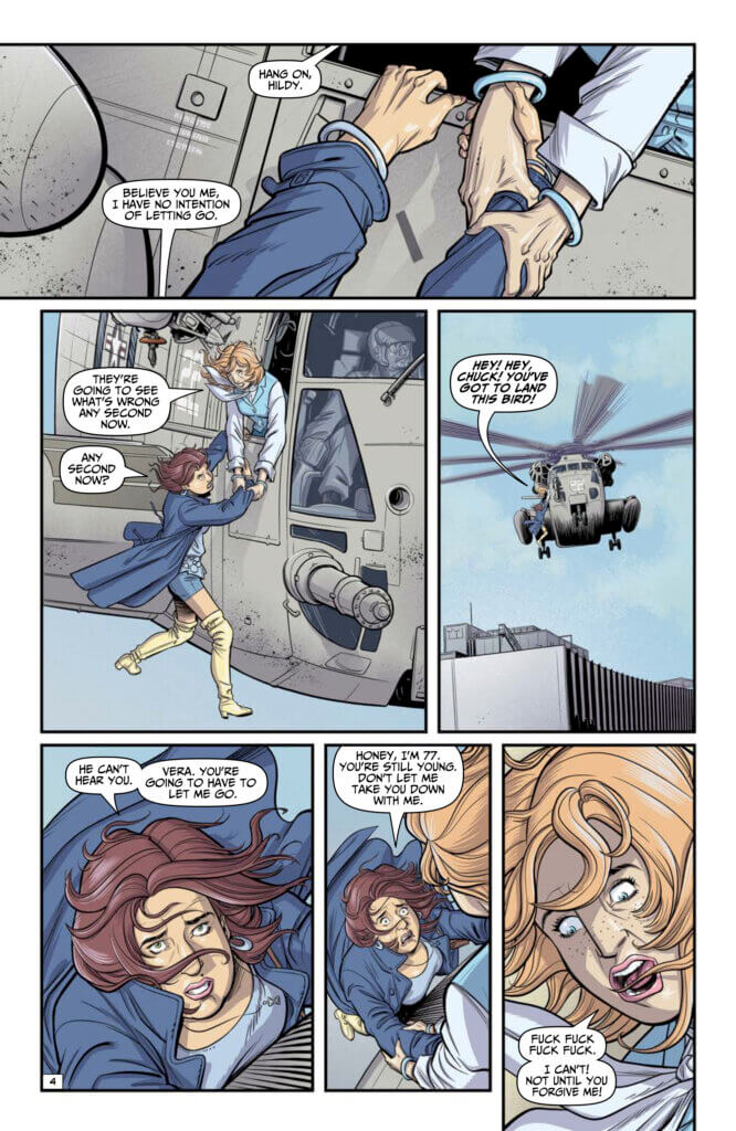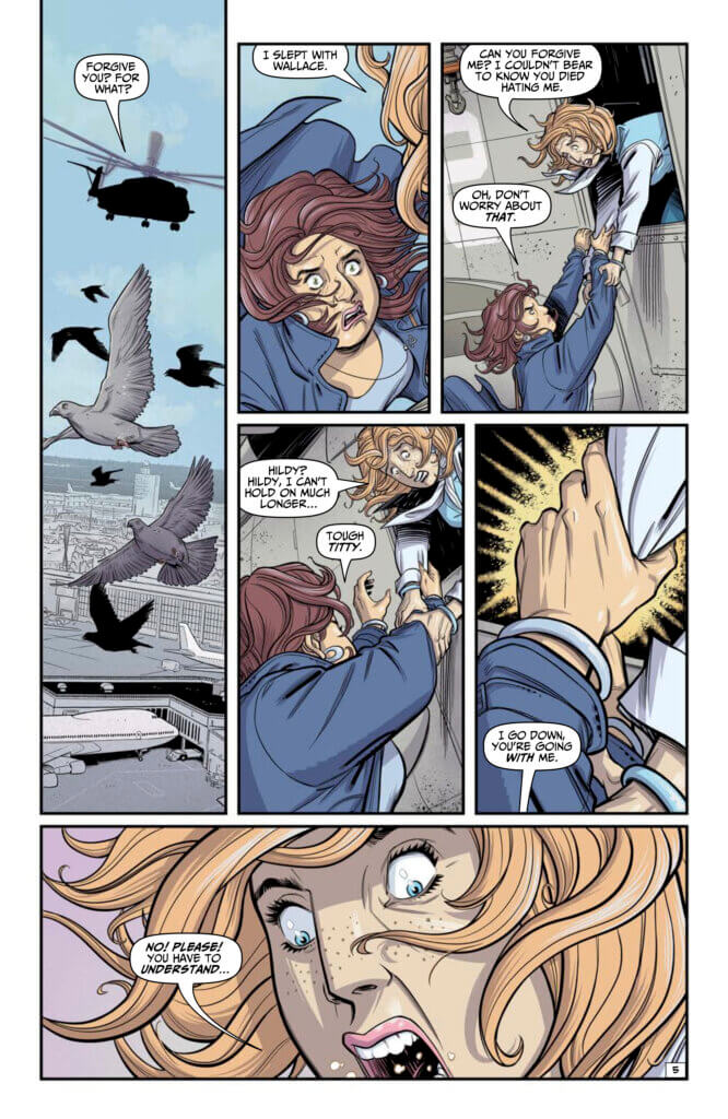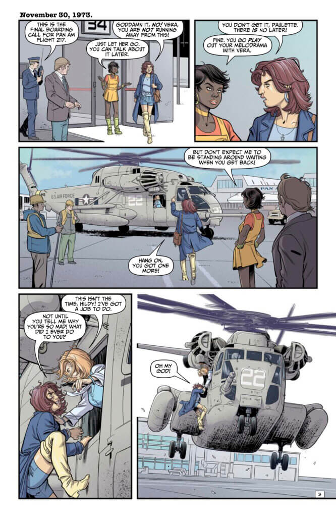 Pan Am Flight 914 takes off in 1973 and plunges straight through into 2013, as Hildy confronts her dearest frenemy while dangling from a rescue helicopter. Trista’s past catches up with her, as does the Bellicent’s sinister doorman, as timelines and plotlines converge in the series Terry Moore (Strangers in Paradise) calls “smart, funny, beautiful…the most entertaining story I’ve read this year.”